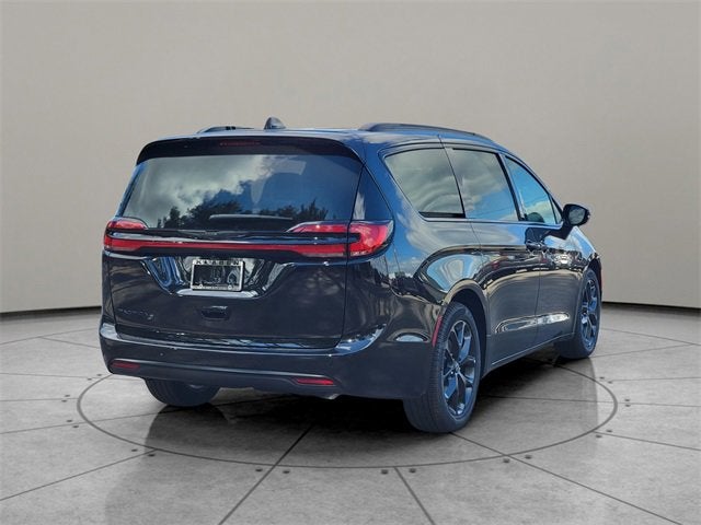 Diamond Black Crystal Pearlcoat 2026 Chrysler Pacifica Select FWD 9-Speed 948TE Automatic 3.6L V6 24V VVT 10.1" Touchscreen Display, 17" x 7.0" Aluminum Wheels, 3.25 Axle Ratio, 360 Surround View Camera System, 3rd row seats: split-bench, 4-Wheel Disc Brakes, 4G LTE Wi-Fi Hot Spot, 6 Speakers, ABS brakes, Air Conditioning, Alloy wheels, AM/FM radio: SiriusXM, Anodized Ink Badging, Apple CarPlay, Apple CarPlay/Android Auto, Auto-dimming Rear-View mirror, Automatic temperature control, Black Day Light Opening Moldings, Black Seats, Black Stow 'N Place Roof Rack, Brake assist, Bumpers: body-color, Caprice Leatherette Bucket Seats, Caprice Leatherette with S Logo, Compass, Connectivity - US/Canada, Delay-off headlights, Disassociated Touchscreen Display, Driver door bin, Driver vanity mirror, Driver's Seat Mounted Armrest, Dual front impact airbags, Dual front side impact airbags, Electronic Stability Control, Emergency communication system: Chrysler Connect, For Details, Visit DriveUconnect.com, Four wheel independent suspension, Front anti-roll bar, Front Bucket Seats, Front dual zone A/C, Front fog lights, Front reading lights, Fully automatic headlights, Garage door transmitter, Google Android Auto, GPS Antenna Input, Heated door mirrors, Heated front seats, Heated steering wheel, Illuminated entry, Integrated Active Noise Cancellation, Integrated Center Stack Radio, Knee airbag, Low tire pressure warning, Memory seat, Occupant sensing airbag, Outside temperature display, Overhead airbag, Overhead console, Panic alarm, ParkSense Front/Rear Park Assist with Stop, ParkView Rear Back-Up Camera, Passenger door bin, Passenger seat mounted armrest, Passenger vanity mirror, Piano Black Interior Accents, Power door mirrors, Power driver seat, Power Liftgate, Power steering, Power windows, Premium Fascia Upper/Lower Grille with Black Surround, Premium Rear Fascia Black, Quick Order Package 27L, Radio data system, Radio: Uconnect 5 with 10.1" Display, Rain sensing wipers, Rear air conditioning, Rear reading lights, Rear window defroster, Rear window wiper, Reclining 3rd row seat, Remote keyless entry, S Appearance Package, S Badge, Safety Sphere, Security system, Speed control, Split folding rear seat, Spoiler, Steering wheel mounted audio controls, Tachometer, Telescoping steering wheel, Tilt steering wheel, Touring Suspension, Traction control, Trip computer, Turn signal indicator mirrors, USB Host Flip, Variably intermittent wipers, Voltmeter, Wheels: 20" x 7.5" S-Model Aluminum Design 1.
