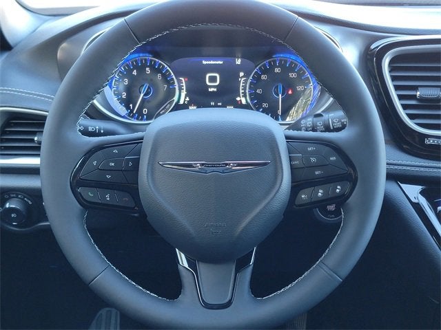 Diamond Black Crystal Pearlcoat 2026 Chrysler Pacifica Select FWD 9-Speed 948TE Automatic 3.6L V6 24V VVT 10.1" Touchscreen Display, 17" x 7.0" Aluminum Wheels, 3.25 Axle Ratio, 360 Surround View Camera System, 3rd row seats: split-bench, 4-Wheel Disc Brakes, 4G LTE Wi-Fi Hot Spot, 6 Speakers, ABS brakes, Air Conditioning, Alloy wheels, AM/FM radio: SiriusXM, Anodized Ink Badging, Apple CarPlay, Apple CarPlay/Android Auto, Auto-dimming Rear-View mirror, Automatic temperature control, Black Day Light Opening Moldings, Black Seats, Black Stow 'N Place Roof Rack, Brake assist, Bumpers: body-color, Caprice Leatherette Bucket Seats, Caprice Leatherette with S Logo, Compass, Connectivity - US/Canada, Delay-off headlights, Disassociated Touchscreen Display, Driver door bin, Driver vanity mirror, Driver's Seat Mounted Armrest, Dual front impact airbags, Dual front side impact airbags, Electronic Stability Control, Emergency communication system: Chrysler Connect, For Details, Visit DriveUconnect.com, Four wheel independent suspension, Front anti-roll bar, Front Bucket Seats, Front dual zone A/C, Front fog lights, Front reading lights, Fully automatic headlights, Garage door transmitter, Google Android Auto, GPS Antenna Input, Heated door mirrors, Heated front seats, Heated steering wheel, Illuminated entry, Integrated Active Noise Cancellation, Integrated Center Stack Radio, Knee airbag, Low tire pressure warning, Memory seat, Occupant sensing airbag, Outside temperature display, Overhead airbag, Overhead console, Panic alarm, ParkSense Front/Rear Park Assist with Stop, ParkView Rear Back-Up Camera, Passenger door bin, Passenger seat mounted armrest, Passenger vanity mirror, Piano Black Interior Accents, Power door mirrors, Power driver seat, Power Front/Fixed Rear Full Sunroof, Power Liftgate, Power Open/Close Shade, Power steering, Power windows, Premium Fascia Upper/Lower Grille with Black Surround, Premium Rear Fascia Black, Quick Order Package 27L, Radio data system, Radio: Uconnect 5 with 10.1" Display, Rain sensing wipers, Rear air conditioning, Rear reading lights, Rear window defroster, Rear window wiper, Reclining 3rd row seat, Remote keyless entry, S Appearance Package, S Badge, Safety Sphere, Security system, Speed control, Split folding rear seat, Spoiler, Steering wheel mounted audio controls, Tachometer, Telescoping steering wheel, Tilt steering wheel, Touring Suspension, Traction control, Trip computer, Turn signal indicator mirrors, USB Host Flip, Variably intermittent wipers, Voltmeter, Wheels: 20" x 7.5" S-Model Aluminum Design 1.