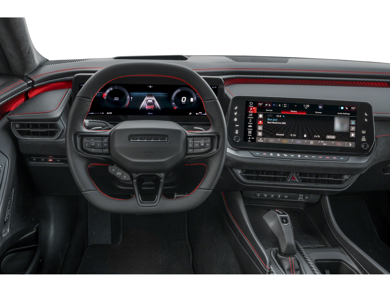 Diamond Black Crystal Pearlcoat 2026 Dodge Charger R/T Scat Pack AWD 8-Speed Automatic HO AWD, Black, 10 Speakers, 16" Color Driver Display, 18 High Performance Alpine Speakers with Subwoofer, 2-Way Manual Adjust Front Head Restraints, 2-Way Power Driver Lumbar Adjust, 4-Wheel Disc Brakes, 4G LTE Wi-Fi Hot Spot, 8-Way Power Driver Seat Adjust, 800 Amp Maintenance Free Battery, ABS brakes, Active Noise Control System, Air Conditioning, Alexa Built-in, Alloy wheels, AM/FM radio: SiriusXM w/360L, Apple CarPlay/Android Auto, Attitude Adjustment Lighting, Auto-dimming Rear-View mirror, Automatic High-Beam Headlamp Control, Automatic temperature control, Black Color Multi-Function Mirrors, Blacktop Package, Brake assist, Bright Pedals, Bumpers: body-color, Compass, Connected Travel and Traffic Services, Connectivity - US/Canada, Dark Exterior Badging, Delay-off headlights, Demonic Red Seats, Disassociated Touchscreen Display, Driver door bin, Driver vanity mirror, Dual front impact airbags, Dual front side impact airbags, Dual Rear Exhaust with Black Tips, Electronic Stability Control, Emergency communication system: Dodge Connect, Exterior Mirrors Logo Lamps, Exterior Mirrors with Memory, Four wheel independent suspension, Front anti-roll bar, Front Bucket Seats, Front Center Armrest, Front Cubby Bin with Light, Front dual zone A/C, Front License Plate Bracket, Front reading lights, Fully automatic headlights, Garage door transmitter, Glove Box Lamp, GPS Navigation, HD Radio, Heads-Up Display, Heated door mirrors, Heated Exterior Mirrors, Heated Front Seats, Heated front seats, Heated Second Row Seats, Heated steering wheel, Illuminated Door Pull Handles, Illuminated entry, Integrated Center Stack Radio, Integrated Voice Command with Bluetooth®, Knee airbag, Leather Shift Knob, Leatherette Seats, Leatherette/Cloth Performance Seats, LED Footwell Lighting, LED Map Pockets, Low Back Bucket Seats, Low tire pressure warning, Map-in-Cluster Display, Occupant sensing airbag, Outside temperature display, Overhead airbag, Overhead console, Panic alarm, ParkView Rear Back-Up Camera, Passenger door bin, Passenger vanity mirror, Performance Pages, Power 2-Way Passenger Lumbar Adjust, Power Adjust 8-Way Front Passenger Seat, Power Adjust Mirrors, Power door mirrors, Power driver seat, Power Hatch, Power steering, Power Tilt/Telescope Steering Column, Power windows, Power Windows Global Down w/Key Fob, Premium LED Low-High Reflective Headlamps, Quick Order Package 22B Scat Pack Plus, Radio data system, Radio, Driver Seat, Mirrors and Steering Column Memory, Radio: Uconnect 5 Navigation with 12.3" Display, Radio: Uconnect 5 with 12.3" Display, Rain Sensitive Windshield Wipers, Rear anti-roll bar, Rear reading lights, Rear seat center armrest, Rear window defroster, Remote keyless entry, Security system, Speed control, Split folding rear seat, Spoiler, Sport steering wheel, Steering wheel mounted audio controls, Surround View Camera System, Tachometer, Telescoping steering wheel, Tilt steering wheel, Traction control, Traffic Sign Information, Trip computer, Variably intermittent wipers, Ventilated Front Seats, Wheels: 20" x 10" Aluminum, Wheels: 20" x 10" Dark Finish Aluminum, Windshield Wiper De-Icer, Wireless Apple CarPlay, Wireless Charging Pad, Wireless Google Android Auto, AWD, Black.