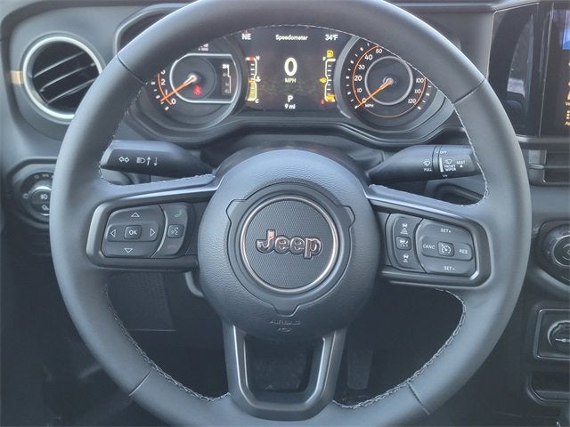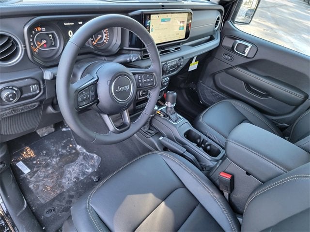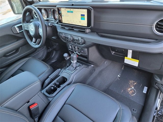 Black Clearcoat 2026 Jeep Gladiator 4WD 8-Speed Automatic 3.6L V6 24V VVT 110 Mph Vehicle Max Speed Calibration, 12.3" Touchscreen Display, 2-Piece Body Color Fender Flares, 3.73 Rear Axle Ratio, 4-Wheel Disc Brakes, 4G LTE Wi-Fi Hot Spot, 8 Speakers, ABS brakes, Advanced Brake Assist, Air Conditioning, Air Conditioning with Auto Temp Control, Alexa Built-in, Alpine Premium Audio System, AM/FM radio: SiriusXM with 360L, Apple CarPlay, Apple CarPlay/Android Auto, Automatic Headlamps, Body Color 3-Piece Hard Top, Brake assist, Central ADAS Decision Module (CADM), Cluster 7.0" TFT Color Display, Compass, Connectivity - US/Canada, Corning Gorilla Glass, Daytime Running Lamp System, Daytime Running Lamps LED Accents, Deep Tint Sunscreen Windows, Delay-off headlights, Driver door bin, Driver vanity mirror, Dual front impact airbags, Dual front side impact airbags, Electronic Stability Control, Emergency/Assistance Call, For Details, Visit DriveUconnect.com, Freedom Panel Storage Bag, Front anti-roll bar, Front Bucket Seats, Front Center Armrest w/Storage, Front Door Locks 2-Door Passive Entry, Front fog lights, Front LED Fog Lamps, Front License Plate Bracket, Front reading lights, Full Length Floor Console Premium Armrest, Full Speed Forward Collision Warning Plus, Google Android Auto, Hard Seat Back, Heated Front Seats, Heated Steering Wheel, Illuminated entry, Integrated Center Stack Radio, Integrated roll-over protection, Leather Wrapped Park Brake Handle, Leather Wrapped Shift Knob, LED Headlamp and Fog Lamp Group, LED Premium Reflector Headlamps, Low tire pressure warning, MOPAR All-Weather Slush Mats, Normal Duty Plus Suspension, Normal Duty Suspension, Occupant sensing airbag, Outside temperature display, Overhead airbag, Panic alarm, ParkView Rear Back-Up Camera, Passenger door bin, Passenger vanity mirror, Power 4-Way Driver Lumbar Adjust, Power 4-Way Passenger Lumbar Adjust, Power Adjust 8-Way Driver Seat, Power Adjust 8-Way Front Passenger Seat, Power Heated Mirrors, Power steering, Power windows, Premium Door Trim Panel, Premium McKinley Trimmed Seats, Premium Wrapped Steering Wheel, Quick Order Package 24H Sahara, Radio data system, Radio: Uconnect 5 with 12.3" Display, Rear anti-roll bar, Rear Armrest with Cupholder Seat, Rear reading lights, Rear Sliding Window, Rear Window Defroster, Remote keyless entry, Remote Start System, Sahara, Sahara Badge Neutral Gray, Security Alarm, SiriusXM Radio Service, SiriusXM with 360L, Speed control, Split folding rear seat, Steering wheel mounted audio controls, Sun Visors with Illuminated Vanity Mirrors, Tachometer, Telescoping steering wheel, Tilt steering wheel, Traction control, Trip computer, Universal Garage Door Opener, USB Host Flip, Variably intermittent wipers, Voltmeter, Wheels: 17" x 7.5" Black Steel Styled, Wheels: 18" x 7.5" Machined/Painted Gray.