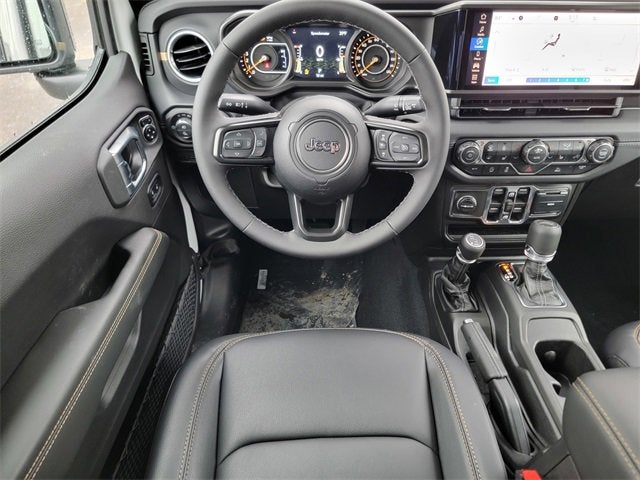 bright white clearcoat 2026 Jeep Gladiator 4WD 8-Speed Automatic 3.6L V6 24V VVT 110 Mph Vehicle Max Speed Calibration, 12.3" Touchscreen Display, 2-Piece Body Color Fender Flares, 3.73 Rear Axle Ratio, 4-Wheel Disc Brakes, 4G LTE Wi-Fi Hot Spot, 8 Speakers, ABS brakes, Advanced Brake Assist, Air Conditioning, Air Conditioning with Auto Temp Control, Alexa Built-in, Alpine Premium Audio System, AM/FM radio: SiriusXM with 360L, Apple CarPlay, Apple CarPlay/Android Auto, Automatic Headlamps, Body Color 3-Piece Hard Top, Brake assist, Central ADAS Decision Module (CADM), Cluster 7.0" TFT Color Display, Compass, Connectivity - US/Canada, Corning Gorilla Glass, Daytime Running Lamp System, Daytime Running Lamps LED Accents, Deep Tint Sunscreen Windows, Delay-off headlights, Driver door bin, Driver vanity mirror, Dual front impact airbags, Dual front side impact airbags, Electronic Stability Control, Emergency/Assistance Call, Freedom Panel Storage Bag, Front anti-roll bar, Front Bucket Seats, Front Center Armrest w/Storage, Front Door Locks 2-Door Passive Entry, Front fog lights, Front LED Fog Lamps, Front License Plate Bracket, Front reading lights, Full Length Floor Console Premium Armrest, Full Speed Forward Collision Warning Plus, Google Android Auto, Hard Seat Back, Heated Front Seats, Heated Steering Wheel, Illuminated entry, Integrated roll-over protection, Leather Wrapped Park Brake Handle, Leather Wrapped Shift Knob, LED Headlamp and Fog Lamp Group, LED Premium Reflector Headlamps, Low tire pressure warning, MOPAR All-Weather Slush Mats, MOPAR Spray in Bedliner, Normal Duty Plus Suspension, Normal Duty Suspension, Occupant sensing airbag, Outside temperature display, Overhead airbag, Panic alarm, ParkView Rear Back-Up Camera, Passenger door bin, Passenger vanity mirror, Power 4-Way Driver Lumbar Adjust, Power 4-Way Passenger Lumbar Adjust, Power Adjust 8-Way Driver Seat, Power Adjust 8-Way Front Passenger Seat, Power Heated Mirrors, Power steering, Power windows, Premium Door Trim Panel, Premium McKinley Trimmed Seats, Premium Wrapped Steering Wheel, Quick Order Package 24H Sahara, Radio data system, Radio: Uconnect 5 with 12.3" Display, Rear anti-roll bar, Rear Armrest with Cupholder Seat, Rear reading lights, Rear Sliding Window, Rear Window Defroster, Remote keyless entry, Remote Start System, Sahara, Sahara Badge Neutral Gray, Security Alarm, Speed control, Split folding rear seat, Steering wheel mounted audio controls, Sun Visors with Illuminated Vanity Mirrors, Tachometer, Telescoping steering wheel, Tilt steering wheel, Traction control, Trip computer, Universal Garage Door Opener, USB Host Flip, Variably intermittent wipers, Voltmeter, Wheels: 17" x 7.5" Black Steel Styled, Wheels: 18" x 7.5" Machined/Painted Gray.
