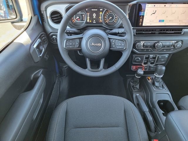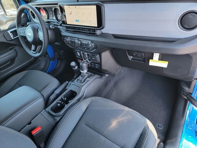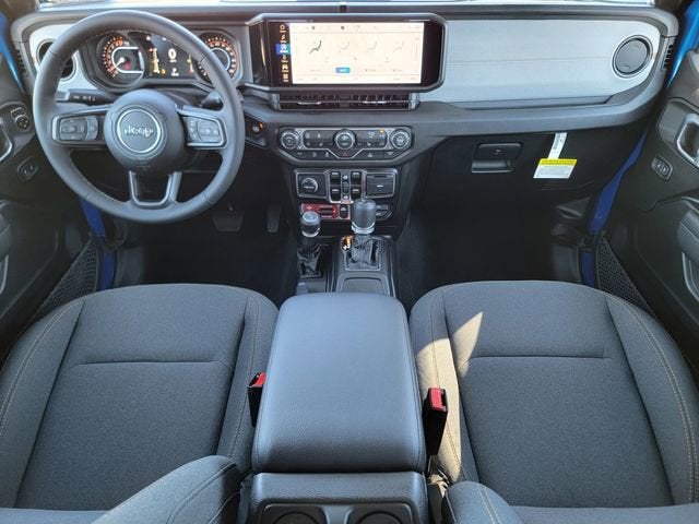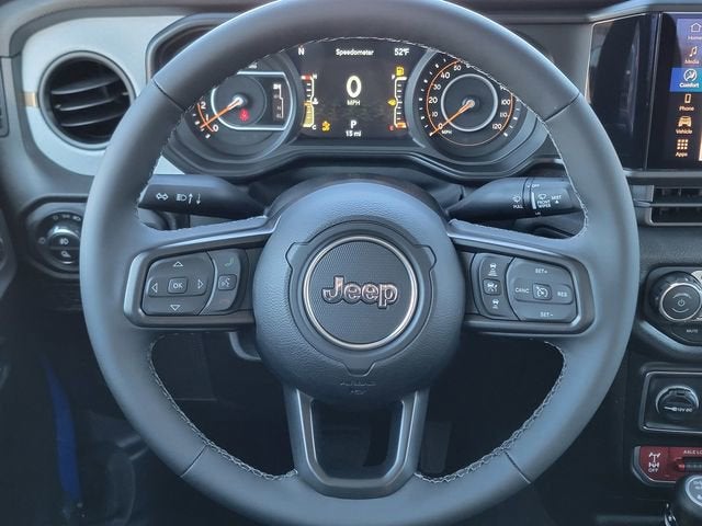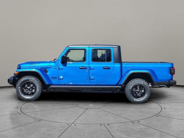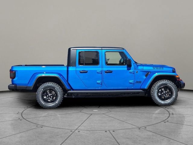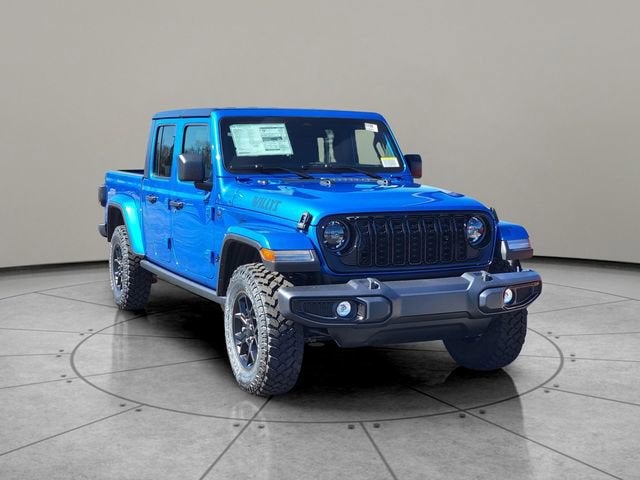 Hydro Blue Pearlcoat 2026 Jeep Gladiator Willys 4WD 8-Speed Automatic 3.6L V6 24V VVT 110 Mph Vehicle Max Speed Calibration, 12.3" Touchscreen Display, 2-Piece Body Color Fender Flares, 3.73 Rear Axle Ratio, 4-Wheel Disc Brakes, 4-Wheel Drive Decal, 4G LTE Wi-Fi Hot Spot, 8 Speakers, ABS brakes, Advanced Brake Assist, Air Conditioning, Air Conditioning with Auto Temp Control, Alexa Built-in, AM/FM radio: SiriusXM with 360L, Apple CarPlay, Apple CarPlay/Android Auto, Automatic Headlamps, Auxiliary Switches, Black 3-Piece Hard Top, Black Grille with Gloss Black Rings, Brake assist, Class IV Receiver Hitch, Cluster 7.0" TFT Color Display, Compass, Connectivity - US/Canada, Convenience Group, Corning Gorilla Glass, Daytime Running Lamp System, Daytime Running Lamps LED Accents, Deep Tint Sunscreen Windows, Delay-off headlights, Driver door bin, Driver vanity mirror, Dual front impact airbags, Dual front side impact airbags, E-Locker Rear Axle, Electronic Stability Control, Emergency/Assistance Call, For Details, Visit DriveUconnect.com, Freedom Panel Storage Bag, Front anti-roll bar, Front Bucket Seats, Front Center Armrest w/Storage, Front Door Locks 2-Door Passive Entry, Front fog lights, Front Heavy Duty Red Accent Shock Absorbers, Front LED Fog Lamps, Front License Plate Bracket, Front reading lights, Full Speed Forward Collision Warning Plus, Google Android Auto, Heated Front Seats, Heated Steering Wheel, Heavy-Duty Engine Cooling, Illuminated entry, Increased Travel Export Tuned Suspension, Integrated Center Stack Radio, Integrated roll-over protection, LED Premium Reflector Headlamps, LED Taillamps, Low tire pressure warning, Mold in Color Bumper with Gloss Black, MOPAR All-Weather Slush Mats, Normal Duty Suspension, Occupant sensing airbag, Off-Road Plus Mode, Outside temperature display, Overhead airbag, Panic alarm, ParkView Rear Back-Up Camera, Passenger door bin, Passenger vanity mirror, Power Heated Mirrors, Power steering, Power windows, Premium Wrapped Steering Wheel, Protection Sill Rails, Quick Order Package 24W Willys, Radio data system, Radio: Uconnect 5 with 12.3" Display, Rear anti-roll bar, Rear Heavy Duty Red Accent Shock Absorbers, Rear reading lights, Rear Sliding Window, Rear Window Defroster, Remote keyless entry, Remote Start System, Security Alarm, SiriusXM Radio Service, SiriusXM with 360L, Speed control, Split folding rear seat, Steering wheel mounted audio controls, Sun Visors with Illuminated Vanity Mirrors, Tachometer, Telescoping steering wheel, Tilt steering wheel, Traction control, Trailer Hitch Zoom, Trip computer, Universal Garage Door Opener, USB Host Flip, Variably intermittent wipers, Voltmeter, Wheels: 17" x 7.5" Black Steel Styled, Wheels: 17" x 7.5" Painted Black, Willys Hood Decal.