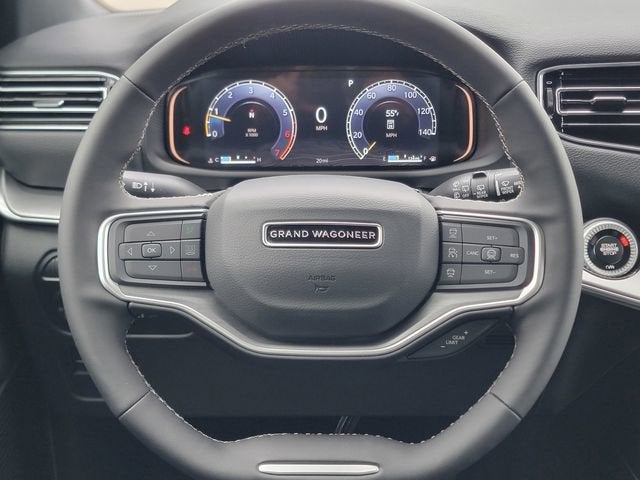 High Gloss Black 2026 Jeep Grand Wagoneer L Limited Altitude 4WD 8-Speed Automatic 3.0L I6 118 MPH Maximum Speed Calibration, 3.55 Rear Axle Ratio, 3rd row seats: bench, 4-Wheel Disc Brakes, 9 Speakers, ABS brakes, Air Conditioning, Alloy wheels, Altitude Appearance Package, AM/FM radio: SiriusXM with 360L, Anti-whiplash front head restraints, Apple CarPlay/Android Auto, Audio memory, Auto Adjust in Reverse Exterior Mirrors, Auto High-beam Headlights, Auto-dimming door mirrors, Auto-Dimming Exterior Driver Mirror, Auto-dimming Rear-View mirror, Auto-leveling suspension, Automatic temperature control, Black Exterior Accents, Brake assist, Bumpers: body-color, Compass, Delay-off headlights, Driver door bin, Driver vanity mirror, Driver's Seat Mounted Armrest, Dual front impact airbags, Dual front side impact airbags, Electronic Stability Control, Emergency communication system: Jeep Connect, Exterior Mirrors Approach Lamps, Exterior Mirrors with Memory, Exterior Mirrors with Supplemental Signals, Exterior Parking Camera Rear, Four wheel independent suspension, Front anti-roll bar, Front Bucket Seats, Front Center Armrest w/Storage, Front dual zone A/C, Front fog lights, Front reading lights, Fully automatic headlights, Garage door transmitter, Heated door mirrors, Heated Exterior Mirrors, Heated front seats, Heated rear seats, Heated steering wheel, Illuminated entry, Knee airbag, Leather Trimmed Bucket Seats, Low tire pressure warning, Memory seat, Navigation System, Normal Duty Suspension, Occupant sensing airbag, Outside temperature display, Overhead airbag, Overhead console, Panic alarm, Passenger door bin, Passenger seat mounted armrest, Passenger vanity mirror, Power door mirrors, Power driver seat, Power Liftgate, Power passenger seat, Power steering, Power windows, Quick Order Package 29X Altitude, Radio data system, Radio: Uconnect 5 Nav with 12" Display, Rain sensing wipers, Rear air conditioning, Rear anti-roll bar, Rear reading lights, Rear seat center armrest, Rear window defroster, Rear window wiper, Reclining 3rd row seat, Remote keyless entry, Security system, Speed control, Speed-sensing steering, Speed-Sensitive Wipers, Split folding rear seat, Steering wheel memory, Steering wheel mounted audio controls, Tachometer, Telescoping steering wheel, Tilt steering wheel, Titanium Daylight Opening Upper, Titanium Upper Grille Applique, Traction control, Trip computer, Turn signal indicator mirrors, Variably intermittent wipers, Ventilated front seats, Voltmeter, Wheels: 20" x 9.0" Aluminum Painted, Wheels: 20" x 9.0" Machine Face Painted Aluminum.