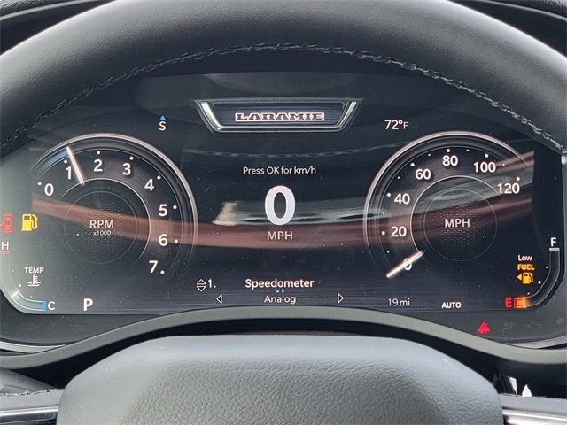 Canyon Lake 2026 Ram 1500 Laramie 4WD 8-Speed Automatic 3.0L I6 10 Speakers, 14.4" Touchscreen Display, 4-Wheel Disc Brakes, 4G LTE Wi-Fi Hot Spot, ABS brakes, Accent Color Door Handles, Accent Color Premium Power Mirrors, Accent Color Tailgate Handle, Active Noise Control System, Air Conditioning, Alloy wheels, AM/FM radio: SiriusXM with 360L, Anti-Spin Differential Rear Axle, Apple CarPlay/Android Auto, Audio memory, Auto High-beam Headlights, Auto Power-Folding Mirrors, Auto-dimming door mirrors, Auto-Dimming Exterior Driver Mirror, Auto-dimming Rear-View mirror, Automatic temperature control, Bed Utility Group, Black Exterior Truck Badging, Black Headlamp Bezels, Black Interior Accents, Black Painted Exterior Mirrors Caps, Black Tail Lamp Bezels, Body Color Front Bumper, Body Color Rear Bumper with Step Pads, Brake assist, Bumpers: chrome, Chrome Exterior Mirrors, Cluster 12" TFT Color Display, Compass, Connected Travel and Traffic Services, Connectivity - US/Canada, Convex Wide-Angle Exterior Mirror Insert, Delay-off headlights, Driver door bin, Driver vanity mirror, Dual Exhaust with Black Tips, Dual front impact airbags, Dual front side impact airbags, Electronic Stability Control, Exterior 115V AC Outlet, Exterior Mirrors Approach Lamps, Exterior Mirrors Courtesy Lamps, Exterior Mirrors with Heating Element, Exterior Mirrors with Memory, Exterior Mirrors with Supplemental Signals, Front anti-roll bar, Front Bucket Seats, Front Center Armrest w/Storage, Front dual zone A/C, Front fog lights, Front License Plate Bracket, Front Passenger Interactive Display, Front reading lights, Front wheel independent suspension, Fully automatic headlights, Garage door transmitter, GPS Navigation, Grille Surround 3 Black Texture 2 Black, Harman/Kardon 19 Speaker Premium Sound, Heated door mirrors, Heated front seats, Heated rear seats, Heated steering wheel, Illuminated entry, Integrated Center Stack Radio, Integrated Voice Command with Bluetooth®, Laramie Level 2 Equipment Group, Leather steering wheel, Leather Trimmed Bucket Seats, Low tire pressure warning, Memory seat, MOPAR 4 Adjustable Cargo Tie-Down Hooks, Mopar Black Tubular Side Steps, MOPAR Spray in Bedliner, Navigation System, Night Edition, Occupant sensing airbag, Off-Road Information Pages, Outside temperature display, Overhead airbag, Overhead console, Panic alarm, ParkView Rear Back-Up Camera, Passenger door bin, Passenger vanity mirror, Pirelli Brand Tires, Power door mirrors, Power driver seat, Power passenger seat, Power steering, Power Tailgate, Power windows, Proximity Approach/Departure Lamps, Quick Order Package 21H Laramie, Radio data system, Radio: Uconnect 5 Nav with 14.4" Display, Radio: Uconnect 5 Navigation with 12.0" Display, Rain Sensitive Windshield Wipers, RAM Grille Badge - Black, RAM Grille Badge - Chrome, Rear anti-roll bar, Rear reading lights, Rear seat center armrest, Rear step bumper, Remote keyless entry, Security system, SiriusXM Radio Service, SiriusXM with 360L, Speed control, Split folding rear seat, Sport Performance Hood, Steering wheel mounted audio controls, Tachometer, Telescoping steering wheel, Tilt steering wheel, Traction control, Trailer Brake Control, Trip computer, Turn signal indicator mirrors, USB Host Flip, Variably intermittent wipers, Ventilated front seats, Voltmeter, Wheels: 20" x 9" Premium Paint/Polish, Wheels: 22" x 9" Forged Aluminum.
