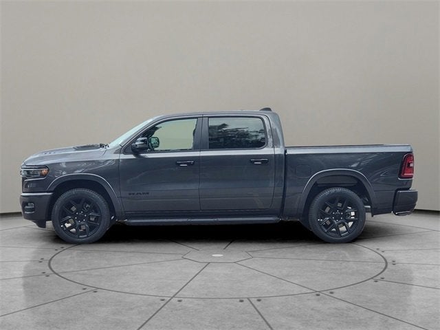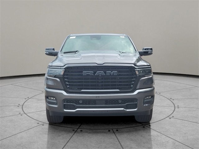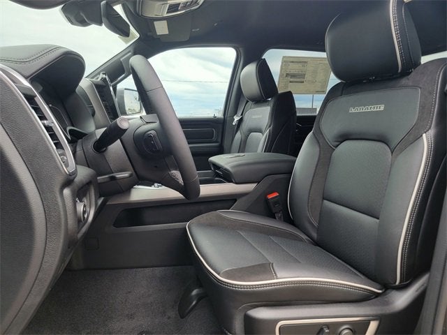 Granite Crystal Metallic Clearcoat 2026 Ram 1500 Laramie 4WD 8-Speed Automatic 3.0L I6 10 Speakers, 14.4" Touchscreen Display, 4-Wheel Disc Brakes, 4G LTE Wi-Fi Hot Spot, ABS brakes, Accent Color Door Handles, Accent Color Premium Power Mirrors, Accent Color Tailgate Handle, Active Noise Control System, Air Conditioning, Alloy wheels, AM/FM radio: SiriusXM with 360L, Anti-Spin Differential Rear Axle, Apple CarPlay/Android Auto, Audio memory, Auto High-beam Headlights, Auto Power-Folding Mirrors, Auto-dimming door mirrors, Auto-Dimming Exterior Driver Mirror, Auto-dimming Rear-View mirror, Automatic temperature control, Bed Utility Group, Black Exterior Truck Badging, Black Headlamp Bezels, Black Interior Accents, Black Painted Exterior Mirrors Caps, Black Tail Lamp Bezels, Body Color Front Bumper, Body Color Rear Bumper with Step Pads, Brake assist, Bumpers: chrome, Chrome Exterior Mirrors, Cluster 12" TFT Color Display, Compass, Connected Travel and Traffic Services, Connectivity - US/Canada, Convex Wide-Angle Exterior Mirror Insert, Delay-off headlights, Driver door bin, Driver vanity mirror, Dual Exhaust with Black Tips, Dual front impact airbags, Dual front side impact airbags, Electronic Stability Control, Exterior 115V AC Outlet, Exterior Mirrors Approach Lamps, Exterior Mirrors Courtesy Lamps, Exterior Mirrors with Heating Element, Exterior Mirrors with Memory, Exterior Mirrors with Supplemental Signals, Front anti-roll bar, Front Bucket Seats, Front Center Armrest w/Storage, Front dual zone A/C, Front fog lights, Front License Plate Bracket, Front Passenger Interactive Display, Front reading lights, Front wheel independent suspension, Fully automatic headlights, Garage door transmitter, GPS Navigation, Grille Surround 3 Black Texture 2 Black, Harman/Kardon 19 Speaker Premium Sound, Heated door mirrors, Heated front seats, Heated rear seats, Heated steering wheel, Illuminated entry, Integrated Center Stack Radio, Integrated Voice Command with Bluetooth®, Laramie Level 2 Equipment Group, Leather steering wheel, Leather Trimmed Bucket Seats, Low tire pressure warning, Memory seat, MOPAR 4 Adjustable Cargo Tie-Down Hooks, Mopar Black Tubular Side Steps, MOPAR Spray in Bedliner, Navigation System, Night Edition, Occupant sensing airbag, Off-Road Information Pages, Outside temperature display, Overhead airbag, Overhead console, Panic alarm, ParkView Rear Back-Up Camera, Passenger door bin, Passenger vanity mirror, Pirelli Brand Tires, Power door mirrors, Power driver seat, Power passenger seat, Power steering, Power Tailgate, Power windows, Proximity Approach/Departure Lamps, Quick Order Package 21H Laramie, Radio data system, Radio: Uconnect 5 Nav with 14.4" Display, Radio: Uconnect 5 Navigation with 12.0" Display, Rain Sensitive Windshield Wipers, RAM Grille Badge - Black, RAM Grille Badge - Chrome, Rear anti-roll bar, Rear reading lights, Rear seat center armrest, Rear step bumper, Remote keyless entry, Security system, SiriusXM Radio Service, SiriusXM with 360L, Speed control, Split folding rear seat, Sport Performance Hood, Steering wheel mounted audio controls, Tachometer, Telescoping steering wheel, Tilt steering wheel, Traction control, Trailer Brake Control, Trip computer, Turn signal indicator mirrors, USB Host Flip, Variably intermittent wipers, Ventilated front seats, Voltmeter, Wheels: 20" x 9" Premium Paint/Polish, Wheels: 22" x 9" Forged Aluminum.