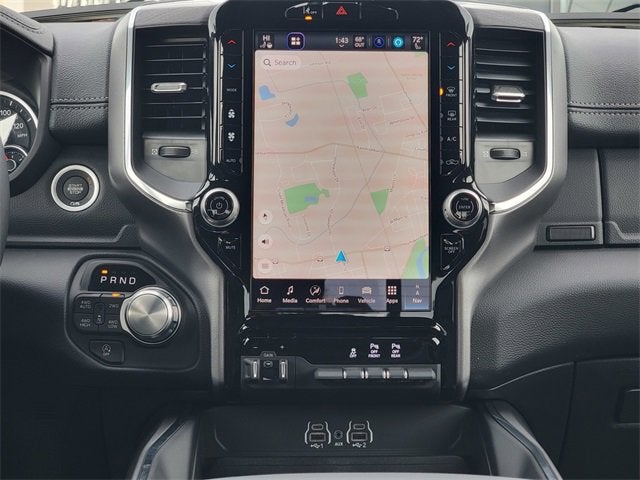Molten Red Pearlcoat 2026 Ram 1500 Laramie 4WD 8-Speed Automatic HEMI 5.7L V8 Multi Displacement VVT eTorque 10 Speakers, 4-Wheel Disc Brakes, 4G LTE Wi-Fi Hot Spot, ABS brakes, Accent Color Premium Power Mirrors, Active Noise Control System, Air Conditioning, Alloy wheels, AM/FM radio: SiriusXM with 360L, Apple CarPlay/Android Auto, Audio memory, Auto High-beam Headlights, Auto Power-Folding Mirrors, Auto-dimming door mirrors, Auto-Dimming Exterior Driver Mirror, Auto-dimming Rear-View mirror, Automatic temperature control, Black Painted Exterior Mirrors Caps, Body Color Front Bumper, Body Color Rear Bumper with Step Pads, Brake assist, Bumpers: chrome, Chrome Exterior Mirrors, Compass, Connected Travel and Traffic Services, Connectivity - US/Canada, Convex Wide-Angle Exterior Mirror Insert, Delay-off headlights, Dome Dual LED Reading Lamp, Driver door bin, Driver vanity mirror, Dual front impact airbags, Dual front side impact airbags, Dual-Pane Panoramic Sunroof, Electronic Stability Control, Exterior Mirrors Courtesy Lamps, Exterior Mirrors with Heating Element, Exterior Mirrors with Memory, Exterior Mirrors with Supplemental Signals, Front anti-roll bar, Front Bucket Seats, Front Center Armrest w/Storage, Front dual zone A/C, Front fog lights, Front License Plate Bracket, Front reading lights, Front wheel independent suspension, Fully automatic headlights, Garage door transmitter, GPS Navigation, Grille Surround 3 Body Color Tex 4 Chrome, Heated door mirrors, Heated front seats, Heated rear seats, Heated steering wheel, Illuminated entry, Integrated Center Stack Radio, Integrated Voice Command with Bluetooth®, Laramie Level 1 Equipment Group, Laramie Preferred Package, Leather steering wheel, Leather Trimmed Bucket Seats, LED Dome/Reading Lamp, Low tire pressure warning, Memory seat, Navigation System, Occupant sensing airbag, Off-Road Information Pages, Outside temperature display, Overhead airbag, Overhead console, Panic alarm, ParkView Rear Back-Up Camera, Passenger door bin, Passenger vanity mirror, Power Deployable Running Boards, Power door mirrors, Power driver seat, Power passenger seat, Power steering, Power windows, Quick Order Package 27H Laramie, Radio data system, Radio: Uconnect 5 Navigation with 12.0" Display, Rain Sensitive Windshield Wipers, RAM Grille Badge - Chrome, Rear anti-roll bar, Rear reading lights, Rear seat center armrest, Rear step bumper, Rear Wheelhouse Liners, Remote keyless entry, Remote Tailgate Release, Security system, SiriusXM Radio Service, SiriusXM with 360L, Speed control, Split folding rear seat, Steering wheel mounted audio controls, Tachometer, Telescoping steering wheel, Tilt steering wheel, Tow Hooks, Traction control, Trailer Brake Control, Trip computer, Turn signal indicator mirrors, USB Host Flip, Variably intermittent wipers, Ventilated front seats, Voltmeter, Wheels: 20" x 9" Premium Paint/Polish.