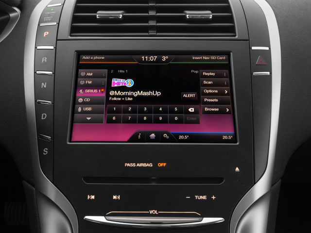 AWD, 11 Speakers, 18 Premium Painted Aluminum Wheels, 19 Polished 18-Spoke Aluminum Wheels, 4-Wheel Disc Brakes, ABS brakes, Adaptive suspension, Air Conditioning, Alloy wheels, AM/FM radio: SiriusXM, Ambient Lighting, Auto-dimming door mirrors, Auto-Dimming Driver Sideview Mirror, Auto-dimming Rear-View mirror, Automatic temperature control, BLIS Blind Spot Information System, Brake assist, Brown Swirl Walnut Trim Package, Bumpers: body-color, CD player, Compass, Configurable Daytime Running Lamps, Cooled Perforated Leather Front Seats, Delay-off headlights, Driver door bin, Driver vanity mirror, Dual front impact airbags, Dual front side impact airbags, Electronic Stability Control, Embedded Modem, Emergency communication system: 911 Assist, Equipment Group 300A Reserve, Exterior Parking Camera Rear, Four wheel independent suspension, Front anti-roll bar, Front Bucket Seats, Front Center Armrest, Front dual zone A/C, Front reading lights, Fully automatic headlights, Garage door transmitter, Genuine wood dashboard insert, Genuine wood door panel insert, HD Radio, Heated door mirrors, Heated front seats, Heated Rear-Seats, Heated Steering Wheel, Illuminated entry, Knee airbag, Leather steering wheel, Lincoln Luxury Soft Touch Leatherette Seats, Lincoln Steering Wheel w/Wood Accents, Low tire pressure warning, Memory seat, Navigation System, Occupant sensing airbag, Outside temperature display, Overhead airbag, Overhead console, Panic alarm, Passenger door bin, Passenger vanity mirror, Power Converter 110V Outlet, Power door mirrors, Power driver seat, Power Moonroof, Power passenger seat, Power Side View Mirrors, Power steering, Power Tilt/Telescoping Steering Wheel, Power Trunk Lid w/ Soft Close, Power windows, Premium Leather-Trimmed Non-Perforated Buckets, Radio data system, Radio: Lincoln Premium Sound System w/SingleCD/MP3, Rear anti-roll bar, Rear Parking Sensors, Rear reading lights, Rear seat center armrest, Rear window defroster, Remote keyless entry, Security system, Speed control, Speed-sensing steering, Speed-Sensitive Wipers, Split folding rear seat, Steering wheel mounted audio controls, SYNC w/MyLincoln Touch, Tachometer, Telescoping steering wheel, Tilt steering wheel, Traction control, Trip computer, Turn signal indicator mirrors, Variably intermittent wipers, AWD. Velvet 2016 Lincoln MKZ AWD 6-Speed Automatic with Select-Shift 3.7L V6 Ti-VCT 24V