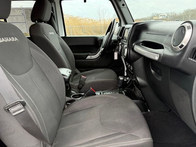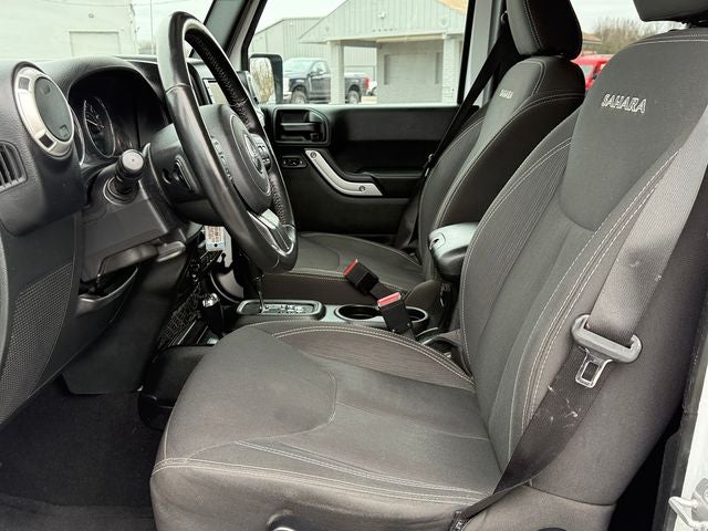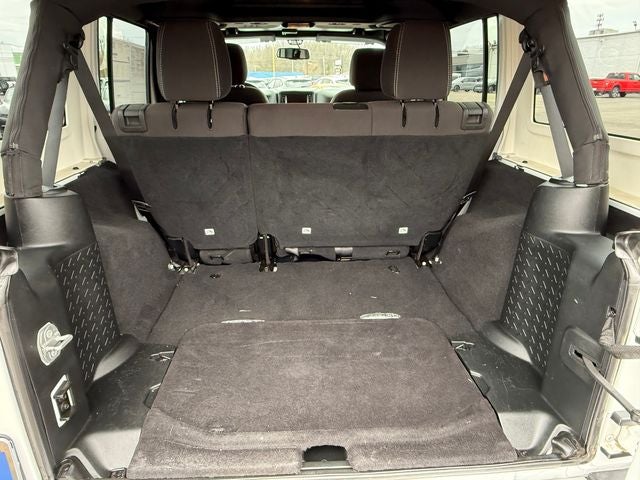 Ford Blue Certified Certified, 18 x 7.5 Polished Satin Carbon Wheels, 3.21 Rear Axle Ratio, 4-Wheel Disc Brakes, 8 Speakers, ABS brakes, Air Conditioning, Alloy wheels, AM/FM radio: SiriusXM, Audio Jack Input for Mobile Devices, Auto-dimming Rear-View mirror, Brake assist, CD player, Cloth Seats w/Adjustable Head Restraints, Compass, Driver door bin, Driver Height Adjuster Seat, Driver vanity mirror, Dual front impact airbags, Electronic Stability Control, Front anti-roll bar, Front Bucket Seats, Front Center Armrest w/Storage, Front fog lights, Front reading lights, Front Seat Back Map Pockets, Fully automatic headlights, Heated door mirrors, Heavy Duty Suspension w/Gas Shocks, Illuminated entry, Integrated roll-over protection, Leather steering wheel, Low tire pressure warning, Occupant sensing airbag, Outside temperature display, Panic alarm, Passenger door bin, Passenger vanity mirror, Power door mirrors, Power steering, Power windows, R1234YF A/C Refrigerant, Radio data system, Radio: 130, Rear anti-roll bar, Remote keyless entry, Security system, Speed control, Split folding rear seat, Steering wheel mounted audio controls, Sunrider Soft Top, Tachometer, Tilt steering wheel, Traction control, Trip computer, Variably intermittent wipers. Bright White Clearcoat 2018 Jeep Wrangler JK Unlimited Sahara 4WD 5-Speed Automatic 3.6L V6 24V VVT