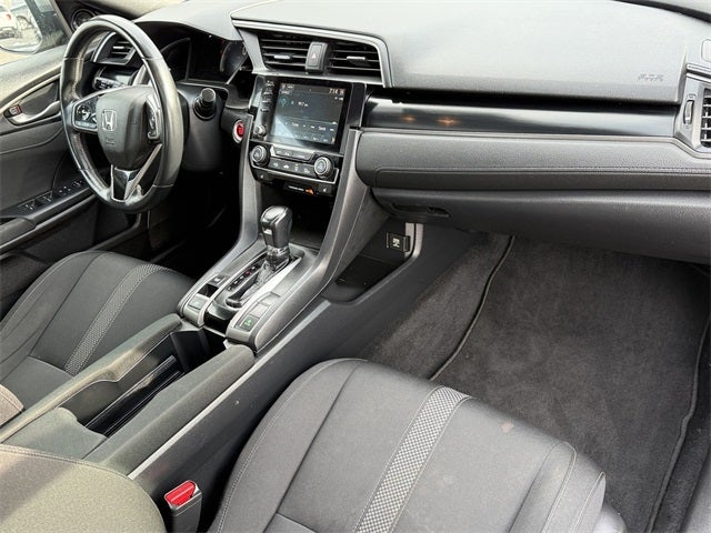 Ford Blue Certified Certified, Black w/Fabric Seating Surfaces, 4-Wheel Disc Brakes, 8 Speakers, ABS brakes, Adaptive Cruise Control: Adaptive Cruise Control (ACC) with Low-Speed Follow, Air Conditioning, Alloy wheels, AM/FM radio: SiriusXM, Apple CarPlay/Android Auto, Auto High-beam Headlights, Automatic temperature control, Brake assist, Bumpers: body-color, Delay-off headlights, Driver door bin, Driver vanity mirror, Dual front impact airbags, Dual front side impact airbags, Electronic Stability Control, Emergency communication system: HondaLink, Exterior Parking Camera Rear, Fabric Seating Surfaces, Forward collision: Collision Mitigation Braking System (CMBS) + FCW mitigation, Four wheel independent suspension, Front anti-roll bar, Front Bucket Seats, Front Center Armrest, Front dual zone A/C, Front fog lights, Front reading lights, Fully automatic headlights, Heated door mirrors, Illuminated entry, Lane departure: Lane Keeping Assist System (LKAS) active, Leather Shift Knob, Low tire pressure warning, Occupant sensing airbag, Outside temperature display, Overhead airbag, Overhead console, Panic alarm, Passenger door bin, Passenger vanity mirror, Power door mirrors, Power driver seat, Power moonroof, Power steering, Power windows, Radio data system, Radio: 180-Watt HD Audio System, Rear anti-roll bar, Rear seat center armrest, Rear window defroster, Rear window wiper, Reclining Front Bucket Seats, Remote keyless entry, Security system, Speed control, Speed-sensing steering, Split folding rear seat, Spoiler, Steering wheel mounted audio controls, Tachometer, Telescoping steering wheel, Tilt steering wheel, Traction control, Trip computer, Variably intermittent wipers, Black w/Fabric Seating Surfaces. Modern Steel Metallic 2020 Honda Civic EX FWD CVT 1.5L I4 DOHC 16V