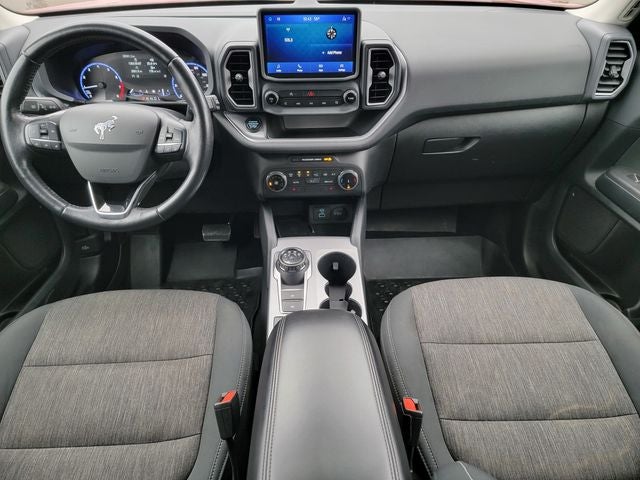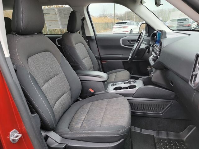 Ford Gold Certified Certified, 3.80 Axle Ratio, 4-Wheel Disc Brakes, 6 Speakers, ABS brakes, Air Conditioning, Alloy wheels, AM/FM radio: SiriusXM, AM/FM Stereo, Auto High-beam Headlights, Automatic temperature control, Brake assist, Class II Trailer Tow Package w/Trailer Sway Control, Compass, Convenience Package, Delay-off headlights, Driver door bin, Driver vanity mirror, Dual front impact airbags, Dual front side impact airbags, Electronic Stability Control, Emergency communication system: SYNC 3 911 Assist, Equipment Group 200A, Four wheel independent suspension, Front & Rear Floor Liners, Front anti-roll bar, Front Bucket Seats, Front Center Armrest, Front Driver & Passenger Seatback Zipper Pockets, Front reading lights, Fully automatic headlights, Heated door mirrors, Heated Front Bucket Seats, Illuminated entry, Intelligent Access (Lock/Unlock), Knee airbag, Leather-Wrapped Steering Wheel, LED Fog Lamps, Low tire pressure warning, Occupant sensing airbag, Outside temperature display, Overhead airbag, Overhead console, Panic alarm, Passenger door bin, Passenger vanity mirror, Power door mirrors, Power steering, Power windows, Radio data system, Rear anti-roll bar, Rear Parking Sensors, Rear reading lights, Rear seat center armrest, Rear window defroster, Rear window wiper, Remote keyless entry, Roof rack: rails only, Rubberized Second Row Seat Backs, Security system, SiriusXM Radio, Speed control, Speed-sensing steering, Speed-Sensitive Wipers, Split folding rear seat, Steering wheel mounted audio controls, SYNC 3 Communications & Entertainment System, SYNC 3/Apple CarPlay/Android Auto, Tachometer, Telescoping steering wheel, Tilt steering wheel, Traction control, Trip computer, Unique Cloth Front Bucket Seats, Universal Garage Door Opener (UGDO), Variably intermittent wipers, Wheels: 17 Carbonized Gray-Painted Aluminum, Wireless Charging Pad. Hot Pepper Red Tinted Clearcoat 2022 Ford Bronco Sport Big Bend 4WD 8-Speed Automatic 1.5L EcoBoost