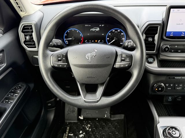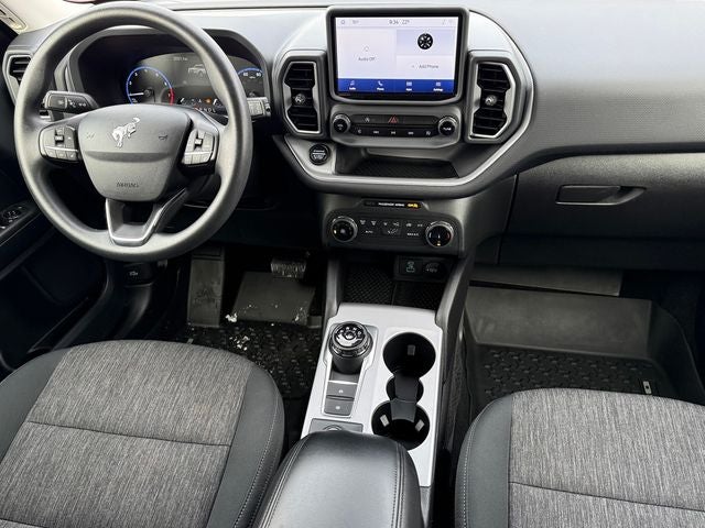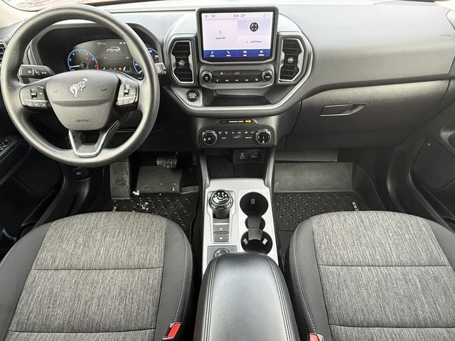 Ford Gold Certified Certified, 3.80 Axle Ratio, 4-Wheel Disc Brakes, 4G LTE Wi-Fi Hotspot Credit, 6 Speakers, ABS brakes, Air Conditioning, Alloy wheels, AM/FM radio: SiriusXM, AM/FM Stereo, Auto High-beam Headlights, Automatic temperature control, Brake assist, Compass, Delay-off headlights, Driver door bin, Driver vanity mirror, Dual front impact airbags, Dual front side impact airbags, Electronic Stability Control, Emergency communication system: SYNC 3 911 Assist, Equipment Group 200A, Four wheel independent suspension, Front anti-roll bar, Front Bucket Seats, Front Center Armrest, Front reading lights, Fully automatic headlights, Heated door mirrors, Illuminated entry, Knee airbag, Low tire pressure warning, Occupant sensing airbag, Outside temperature display, Overhead airbag, Overhead console, Panic alarm, Passenger door bin, Passenger vanity mirror, Power door mirrors, Power steering, Power windows, Radio data system, Rear anti-roll bar, Rear reading lights, Rear seat center armrest, Rear window defroster, Rear window wiper, Remote keyless entry, Roof rack: rails only, Security system, SiriusXM Radio, Speed control, Speed-sensing steering, Speed-Sensitive Wipers, Split folding rear seat, Steering wheel mounted audio controls, SYNC 3 Communications & Entertainment System, SYNC 3/Apple CarPlay/Android Auto, Tachometer, Telescoping steering wheel, Tilt steering wheel, Traction control, Trip computer, Unique Cloth Front Bucket Seats, Variably intermittent wipers, Wheels: 17 Carbonized Gray-Painted Aluminum. Hot Pepper Red Tinted Clearcoat 2022 Ford Bronco Sport Big Bend 4WD 8-Speed Automatic 1.5L EcoBoost