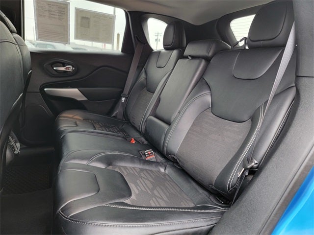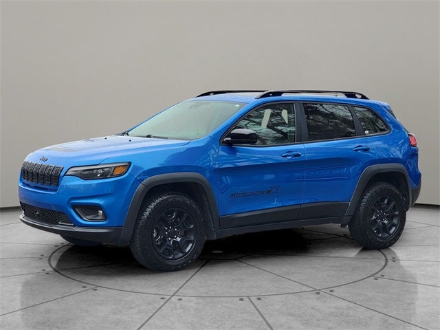 CPO Gold Certified, All-Season Floor Mats, Cherokee X, Cherokee X Door Decal, Cherokee X Fascia, Cherokee X Hood & Liftgate Decal, Cloth/Premium Vinyl Seats w/Pixel Play, Front LED Fog Lamps, Gloss Black Badges, Gloss Black Exterior Accents, Gloss Black Grille Surrounds, Heated Front Seats, Heated Steering Wheel, Leather Wrapped Shift Knob, Light Tungsten Interior Accents, Matte Black Rear Tow Hook, Off Road Suspension, Off Road Wheel Flares, Offroad Sill Cladding, Power Adjust 8-Way Driver Seat, Power Driver Lumbar Adjust, Power Front/Fixed Rear Full Sunroof, Premium Alpine Speaker System, Premium-Wrapped Steering Wheel, Quick Order Package 26S Cherokee X, Remote Start System, Silver Anodized Interior Accents, Sliding Sun Visors w/Illuminated Mirrors, Steering Wheel Mounted Audio Controls, Sun & Sound Group, Wheels: 17 x 7.5 Black Painted Aluminum, Windshield Wiper De-Icer, 3.251 Final Drive Ratio, 4-Wheel Disc Brakes, 6 Speakers, ABS brakes, Air Conditioning, Alloy wheels, AM/FM radio: SiriusXM, Anti-whiplash front head restraints, Apple CarPlay/Android Auto, Brake assist, Bumpers: body-color, Compass, Delay-off headlights, Driver door bin, Driver vanity mirror, Dual front impact airbags, Dual front side impact airbags, Electronic Stability Control, Four wheel independent suspension, Front anti-roll bar, Front Bucket Seats, Front Center Armrest, Front License Plate Bracket, Front reading lights, Fully automatic headlights, Heated door mirrors, Illuminated entry, Knee airbag, Low tire pressure warning, Occupant sensing airbag, Outside temperature display, Overhead airbag, Overhead console, Panic alarm, ParkView Rear Back-Up Camera, Passenger door bin, Passenger vanity mirror, Power door mirrors, Power steering, Power windows, Radio data system, Radio: Uconnect 4 w/8.4 Display, Rain sensing wipers, Rear anti-roll bar, Rear reading lights, Rear seat center armrest, Rear side impact airbag, Rear window defroster, Rear window wiper, Remote keyless entry, Roof rack: rails only, Speed control, Speed-sensing steering, Split folding rear seat, Spoiler, Tachometer, Telescoping steering wheel, Tilt steering wheel, Traction control, Trip computer, Turn signal indicator mirrors, Variably intermittent wipers, Voltmeter, All-Season Floor Mats, Cherokee X, Cherokee X Door Decal, Cherokee X Fascia, Cherokee X Hood & Liftgate Decal, Cloth/Premium Vinyl Seats w/Pixel Play, Front LED Fog Lamps, Gloss Black Badges, Gloss Black Exterior Accents, Gloss Black Grille Surrounds, Heated Front Seats, Heated Steering Wheel, Leather Wrapped Shift Knob, Light Tungsten Interior Accents, Matte Black Rear Tow Hook, Off Road Suspension, Off Road Wheel Flares, Offroad Sill Cladding, Power Adjust 8-Way Driver Seat, Power Driver Lumbar Adjust, Power Front/Fixed Rear Full Sunroof, Premium Alpine Speaker System, Premium-Wrapped Steering Wheel, Quick Order Package 26S Cherokee X, Remote Start System, Silver Anodized Interior Accents, Sliding Sun Visors w/Illuminated Mirrors, Steering Wheel Mounted Audio Controls, Sun & Sound Group, Wheels: 17 x 7.5 Black Painted Aluminum, Windshield Wiper De-Icer. Hydro Blue Pearlcoat 2022 Jeep Cherokee X 4WD 9-Speed 948TE Automatic 3.2L V6