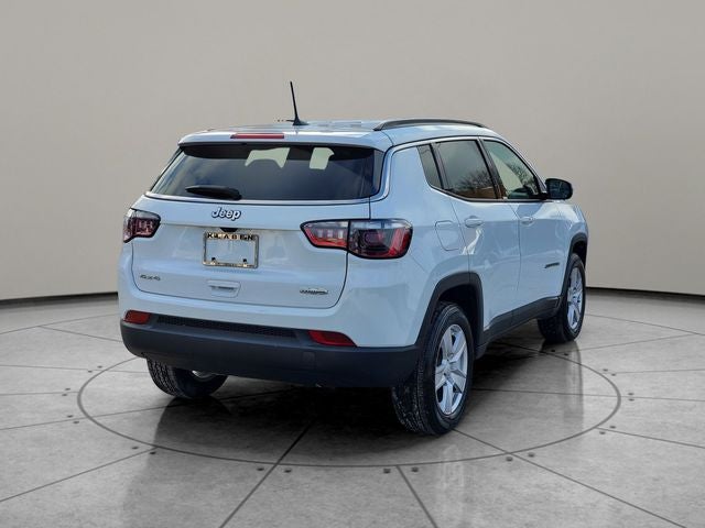 CPO Gold Certified, 4WD, 115V Auxiliary Power Outlet, 2nd Row USB Type A/C Charge Only, Air Conditioning ATC w/Dual Zone Control, All-Season Floor Mats, Auto-Dimming Rear-View Mirror, Convenience Group, Foot Activated Open 'N Go Liftgate, Heated Front Seats, Heated Steering Wheel, Humidity Sensor, Leather Wrapped Steering Wheel, Power Adjust 8-Way Driver Seat, Power Liftgate, Quick Order Package 2GJ, Remote Start System, Reversible Carpet/Vinyl Cargo Mat, Security Alarm, Universal Garage Door Opener, Vehicle Information Center, Windshield Wiper De-Icer, 17 x 7 Painted Aluminum Wheels, 3.73 Axle Ratio, 4-Wheel Disc Brakes, 6 Speakers, ABS brakes, Air Conditioning, Alloy wheels, AM/FM radio: SiriusXM, Anti-whiplash front head restraints, Auto High-beam Headlights, Brake assist, Bumpers: body-color, Compass, Delay-off headlights, Driver door bin, Driver vanity mirror, Dual front impact airbags, Dual front side impact airbags, Electronic Stability Control, Emergency communication system: SiriusXM Guardian, Four wheel independent suspension, Front anti-roll bar, Front Bucket Seats, Front Center Armrest w/Storage, Front fog lights, Front License Plate Bracket, Front reading lights, Fully automatic headlights, Heated door mirrors, Illuminated entry, Knee airbag, Leather Shift Knob, Low tire pressure warning, Occupant sensing airbag, Outside temperature display, Overhead airbag, Overhead console, Panic alarm, ParkView Rear Back-Up Camera, Passenger door bin, Passenger vanity mirror, Power door mirrors, Power steering, Power windows, Premium Cloth/Vinyl Bucket Seats, Radio: Uconnect 5 w/10.1 Display, Rear anti-roll bar, Rear seat center armrest, Rear window defroster, Rear window wiper, Remote keyless entry, Roof rack: rails only, Speed control, Split folding rear seat, Spoiler, Steering wheel mounted audio controls, Tachometer, Telescoping steering wheel, Tilt steering wheel, Traction control, Trip computer, Variably intermittent wipers, 4WD, 115V Auxiliary Power Outlet, 2nd Row USB Type A/C Charge Only, Air Conditioning ATC w/Dual Zone Control, All-Season Floor Mats, Auto-Dimming Rear-View Mirror, Convenience Group, Foot Activated Open 'N Go Liftgate, Heated Front Seats, Heated Steering Wheel, Humidity Sensor, Leather Wrapped Steering Wheel, Power Adjust 8-Way Driver Seat, Power Liftgate, Quick Order Package 2GJ, Remote Start System, Reversible Carpet/Vinyl Cargo Mat, Security Alarm, Universal Garage Door Opener, Vehicle Information Center, Windshield Wiper De-Icer. Bright White Clearcoat 2022 Jeep Compass Latitude 4WD 9-Speed 948TE Automatic 2.4L I4