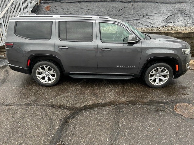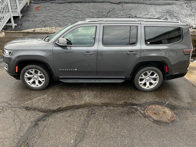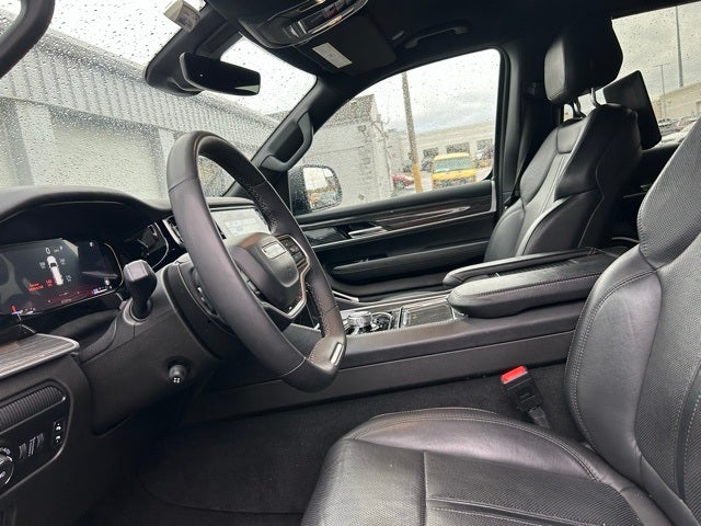 CPO Gold Certified, Amazon Fire TV Built-In, Quick Order Package 22J, Rear Seat Video Group 1, Seatback Video Screens, Video USB Port, 10 Speakers, 3.21 Rear Axle Ratio, 3rd row seats: bench, 4-Wheel Disc Brakes, ABS brakes, Adjustable pedals, Air Conditioning, Alloy wheels, AM/FM radio: SiriusXM with 360L, Anti-whiplash front head restraints, Audio memory, Auto-dimming door mirrors, Auto-dimming Rear-View mirror, Auto-leveling suspension, Automatic temperature control, Brake assist, Bumpers: body-color, Compass, Delay-off headlights, Driver door bin, Driver vanity mirror, Driver's Seat Mounted Armrest, Dual front impact airbags, Dual front side impact airbags, Electronic Stability Control, Exterior Parking Camera Rear, Four wheel independent suspension, Front anti-roll bar, Front Bucket Seats, Front Center Armrest w/Storage, Front dual zone A/C, Front fog lights, Front Passenger Interactive Display, Front reading lights, Fully automatic headlights, Garage door transmitter, Genuine wood console insert, Genuine wood dashboard insert, Genuine wood door panel insert, Heated door mirrors, Heated front seats, Heated steering wheel, Illuminated entry, Knee airbag, Leather Trimmed Bucket Seats, Low tire pressure warning, Memory seat, Navigation System, Normal Duty Suspension, Occupant sensing airbag, Outside temperature display, Overhead airbag, Overhead console, Panic alarm, Passenger door bin, Passenger seat mounted armrest, Passenger vanity mirror, Pedal memory, Power adjustable front head restraints, Power door mirrors, Power driver seat, Power Liftgate, Power passenger seat, Power steering, Power windows, Radio data system, Radio: Uconnect 5 Nav w/10.1 Display, Rain sensing wipers, Rear air conditioning, Rear anti-roll bar, Rear dual zone A/C, Rear reading lights, Rear seat center armrest, Rear window defroster, Rear window wiper, Reclining 3rd row seat, Remote keyless entry, Security system, Speed control, Speed-sensing steering, Speed-Sensitive Wipers, Split folding rear seat, Steering wheel memory, Steering wheel mounted audio controls, Tachometer, Telescoping steering wheel, Tilt steering wheel, Traction control, Trip computer, Turn signal indicator mirrors, Variably intermittent wipers, Ventilated front seats, Voltmeter, Wheels: 20 x 9.0 Aluminum Base Finish, Amazon Fire TV Built-In, Quick Order Package 22J, Rear Seat Video Group 1, Seatback Video Screens, Video USB Port. Baltic Gray Metallic Clearcoat 2022 Jeep Wagoneer Series II 4WD 8-Speed Automatic 5.7L V8