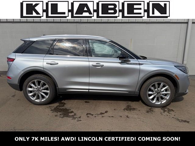 Lincoln Signature Certification Certified, 10 Speakers, 18 Bright Machined Aluminum Wheels, 19 Premium Painted Aluminum Wheels, 3.81 Axle Ratio, 4-Wheel Disc Brakes, 60/40 EasyFold Rear Seat w/Power Seatback Release, ABS brakes, Air Conditioning, All-Weather Floor Liners w/Fr&Rr Carpet Floor Mats, Alloy wheels, AM/FM radio: SiriusXM, Ambient Lighting, Auto High-beam Headlights, Auto-dimming Rear-View mirror, Automatic temperature control, Brake assist, Bumpers: body-color, Compass, Convenience Package, Delay-off headlights, Driver door bin, Driver vanity mirror, Dual front impact airbags, Dual front side impact airbags, Electronic Stability Control, Elements Package, Emergency communication system: 911 Assist, Equipment Group 101A, Four wheel independent suspension, Front anti-roll bar, Front Bucket Seats, Front Center Armrest, Front dual zone A/C, Front reading lights, Fully automatic headlights, Heated door mirrors, Heated front seats, Heated Rear Seat, Heated Steering Wheel, Heated/Ventilated Driver & Front Passenger Seats, Illuminated entry, Knee airbag, Low tire pressure warning, Memory seat, Micro-Perforated Lincoln Soft Touch Seats, Occupant sensing airbag, Outside temperature display, Overhead airbag, Overhead console, Panic alarm, Panoramic Vista Roof w/Power Shade, Passenger door bin, Passenger vanity mirror, Power door mirrors, Power driver seat, Power Liftgate, Power passenger seat, Power steering, Power windows, Premium Leather-Trimmed Comfort Seats, Premium Package, Radio data system, Radio: Lincoln Premium Audio System w/MP3, Rain Sensing Wipers, Rear anti-roll bar, Rear Parking Sensors, Rear reading lights, Rear seat center armrest, Rear window defroster, Rear window wiper, Remote keyless entry, Roof rack: rails only, Security system, SiriusXM Radio, Speed control, Speed-sensing steering, Speed-Sensitive Wipers, Split folding rear seat, Spoiler, Steering wheel mounted A/C controls, Steering wheel mounted audio controls, SYNC 3 Communications & Entertainment System, Tachometer, Telescoping steering wheel, Tilt steering wheel, Traction control, Trip computer, Universal Garage Door Opener, Variably intermittent wipers, Ventura Leather-Wrapped Steering Wheel, Voice-Activated Touchscreen Navigation System, Windshield Wiper De-Icer. Silver Radiance Metallic Clearcoat 2022 Lincoln Corsair Standard AWD 8-Speed Automatic 2.0L I4