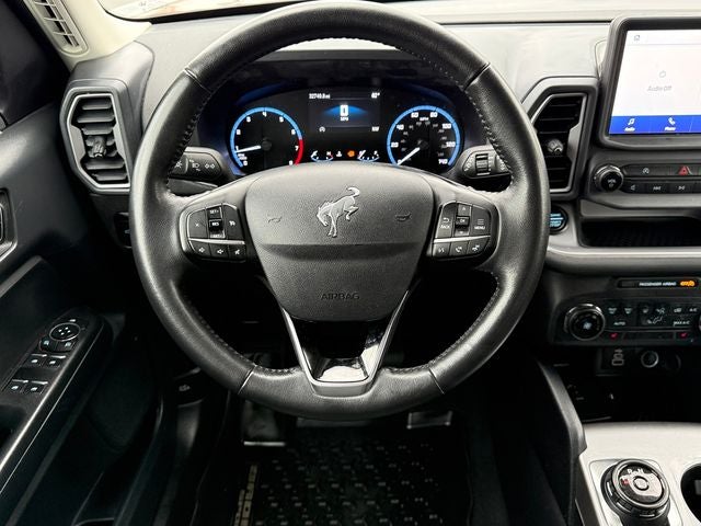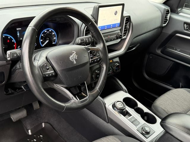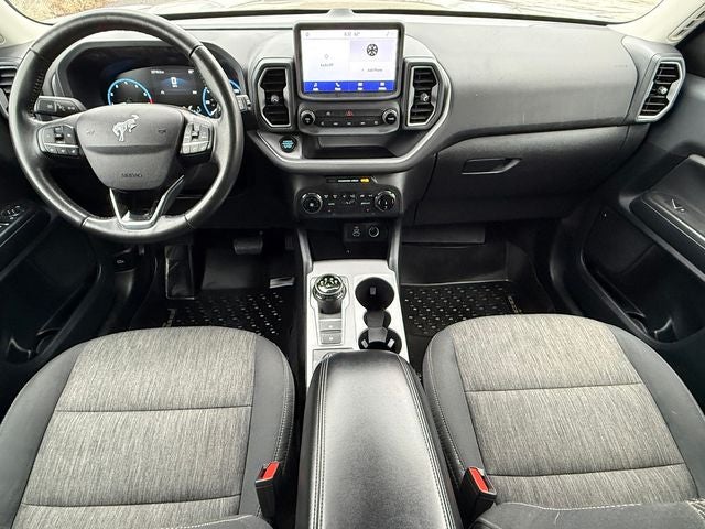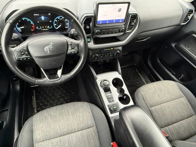 Ford Gold Certified Certified, 3.80 Axle Ratio, 4-Wheel Disc Brakes, 4G LTE Wi-Fi Hotspot Credit, 6 Speakers, ABS brakes, Air Conditioning, Alloy wheels, AM/FM radio: SiriusXM, AM/FM Stereo, Auto High-beam Headlights, Automatic temperature control, Brake assist, Compass, Convenience Package, Delay-off headlights, Driver door bin, Driver vanity mirror, Dual front impact airbags, Dual front side impact airbags, Electronic Stability Control, Emergency communication system: SYNC 3 911 Assist, Equipment Group 200A, Four wheel independent suspension, Front & Rear Floor Liners, Front anti-roll bar, Front Bucket Seats, Front Center Armrest, Front Driver & Passenger Seatback Zipper Pockets, Front reading lights, Fully automatic headlights, Heated door mirrors, Heated Front Bucket Seats, Illuminated entry, Intelligent Access (Lock/Unlock), Knee airbag, Leather-Wrapped Steering Wheel, LED Fog Lamps, Low tire pressure warning, Occupant sensing airbag, Outside temperature display, Overhead airbag, Overhead console, Panic alarm, Passenger door bin, Passenger vanity mirror, Power door mirrors, Power steering, Power windows, Radio data system, Rear anti-roll bar, Rear Parking Sensors, Rear reading lights, Rear seat center armrest, Rear window defroster, Rear window wiper, Remote keyless entry, Security system, SiriusXM, Speed control, Speed-sensing steering, Speed-Sensitive Wipers, Split folding rear seat, Steering wheel mounted audio controls, SYNC 3 Communications & Entertainment System, SYNC 3/Apple CarPlay/Android Auto, Tachometer, Telescoping steering wheel, Tilt steering wheel, Traction control, Trip computer, Unique Cloth Front Bucket Seats, Universal Garage Door Opener (UGDO), Variably intermittent wipers, Wheels: 17 Carbonized Gray-Painted Aluminum, Wireless Charging Pad. Carbonized Gray Metallic 2023 Ford Bronco Sport Big Bend 4WD 8-Speed Automatic 1.5L EcoBoost