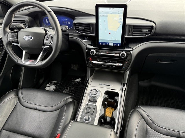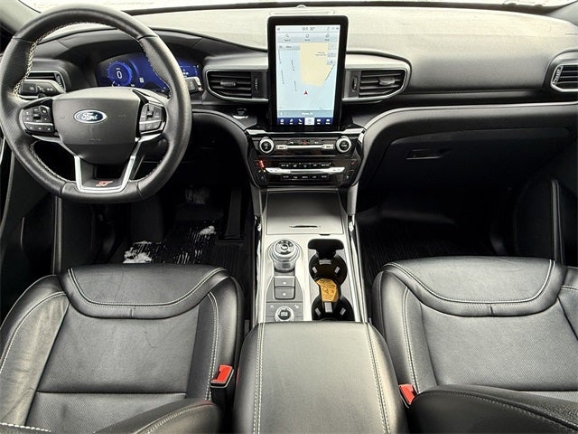 Ford Gold Certified Certified, 4WD, 20 Machined Aluminum w/Painted Pockets Wheels, 3.58 Non-Limited-Slip Rear Axle Ratio, 3rd row seats: bench, 4-Wheel Disc Brakes, 6 Speakers, ABS brakes, Air Conditioning, Alloy wheels, AM/FM radio: SiriusXM, AM/FM Stereo, Auto High-beam Headlights, Automatic temperature control, Brake assist, Bumpers: body-color, Compass, Delay-off headlights, Driver door bin, Driver vanity mirror, Dual front impact airbags, Dual front side impact airbags, Electronic Stability Control, Emergency communication system: SYNC 3 911 Assist, Exterior Parking Camera Rear, FordPass Connect, Four wheel independent suspension, Front anti-roll bar, Front Bucket Seats, Front Center Armrest, Front dual zone A/C, Front fog lights, Front reading lights, Fully automatic headlights, Heated door mirrors, Heated front seats, Heated steering wheel, Illuminated entry, Knee airbag, Leather Htd/Ventilated Sport Captain's Chairs, Leather steering wheel, Low tire pressure warning, Memory seat, Occupant sensing airbag, Outside temperature display, Overhead airbag, Overhead console, Panic alarm, Passenger door bin, Passenger vanity mirror, Power door mirrors, Power driver seat, Power Liftgate, Power passenger seat, Power steering, Power windows, Rear air conditioning, Rear anti-roll bar, Rear reading lights, Rear window defroster, Rear window wiper, Remote keyless entry, Security system, SelectShift Capability w/Paddle Shifters, Speed control, Speed-sensing steering, Speed-Sensitive Wipers, Split folding rear seat, Spoiler, Sport steering wheel, Steering wheel mounted audio controls, SYNC 3 Communications & Entertainment System, SYNC 3/Apple CarPlay/Android Auto, Tachometer, Telescoping steering wheel, Tilt steering wheel, Traction control, Trip computer, Variably intermittent wipers, Ventilated front seats, 4WD. Stone Blue Metallic 2023 Ford Explorer ST 4WD 10-Speed Automatic 3.0L EcoBoost V6