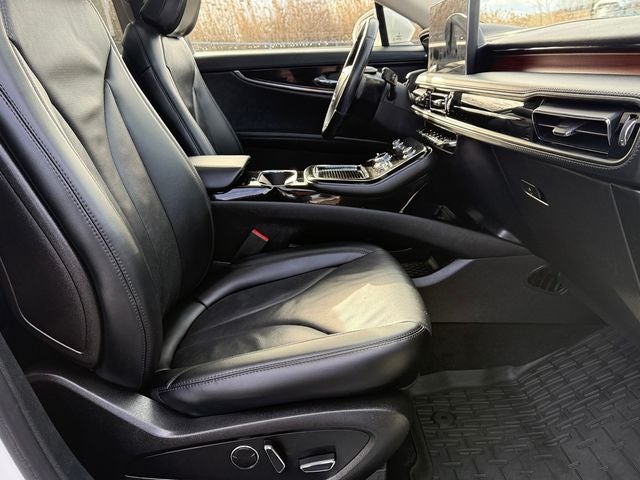 Lincoln Signature Certification Certified, 10 Speakers, 110V/150W AC Power Outlet, 3.80 Axle Ratio, 4-Wheel Disc Brakes, ABS brakes, Air Conditioning, Alexa Built-In, All-Weather Floor Liners w/o Carpet Mats, Alloy wheels, AM/FM radio: SiriusXM with 360L, Auto High-beam Headlights, Auto tilt-away steering wheel, Auto-dimming door mirrors, Auto-dimming Rear-View mirror, Automatic temperature control, Brake assist, Bumpers: body-color, Cargo Accessories & Mat Package (43D), Cargo Compartment w/Reversible Mat, Cargo Utility Package, Compass, Delay-off headlights, Driver door bin, Driver vanity mirror, Dual front impact airbags, Dual front side impact airbags, Durable Lightweight Rubber Cargo Mat, Electronic Stability Control, Emergency communication system: 911 Assist, Equipment Group 200A, Four wheel independent suspension, Front anti-roll bar, Front Bucket Seats, Front Center Armrest w/Storage, Front dual zone A/C, Front reading lights, Fully automatic headlights, Garage door transmitter: HomeLink, Heated door mirrors, Heated front seats, Heated rear seats, Heated steering wheel, Illuminated entry, Interior Cargo Cover, Knee airbag, Leather steering wheel, Low tire pressure warning, Memory seat, Molded Plastic Storage Bins, Navigation System, Occupant sensing airbag, Outside temperature display, Overhead airbag, Overhead console, Panic alarm, Passenger door bin, Passenger vanity mirror, Power door mirrors, Power driver seat, Power Liftgate, Power moonroof: Panoramic Vista Roof, Power passenger seat, Power steering, Power windows, Premium Lthr-Trmmd Heated/Ventilated Comfort Seats, Radio data system, Radio: AM/FM/HD Audio System, Rain sensing wipers, Rear anti-roll bar, Rear Bumper Anti-Scratch Pad/Load Protector, Rear Cargo Management System, Rear reading lights, Rear seat center armrest, Rear window defroster, Rear window wiper, Remote keyless entry, Security system, Speed control, Speed-sensing steering, Speed-Sensitive Wipers, Split folding rear seat, Spoiler, Steering wheel memory, Steering wheel mounted A/C controls, Steering wheel mounted audio controls, SYNC 4 w/Enhanced Voice Recognition, Tachometer, Telescoping steering wheel, Tilt steering wheel, Traction control, Trip computer, Turn signal indicator mirrors, Variably intermittent wipers, Ventilated front seats, Wheels: 18 Premium Painted Bright Machined Alum, Wheels: 20 Prem Painted Bright Machined Aluminum. Pristine White Metallic Tri-Coat 2023 Lincoln Nautilus Reserve AWD 8-Speed Automatic 2.0L Turbocharged