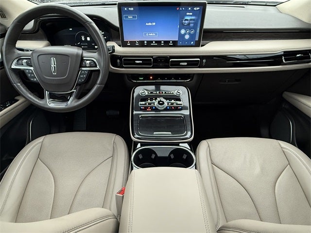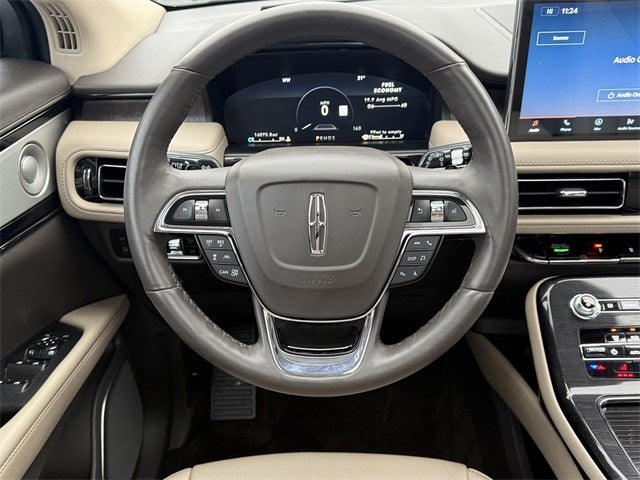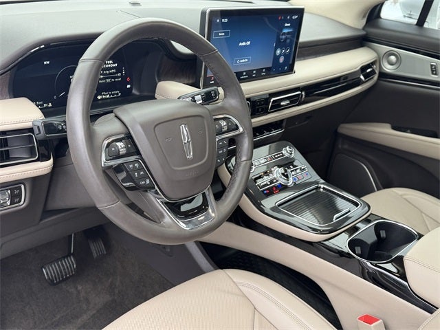 Lincoln Signature Certification Certified, 10 Speakers, 110V/150W AC Power Outlet, 3.80 Axle Ratio, 4-Wheel Disc Brakes, ABS brakes, Adaptive Cruise Control, Air Conditioning, Alexa Built-In, Alloy wheels, AM/FM radio: SiriusXM with 360L, Auto High-beam Headlights, Auto tilt-away steering wheel, Auto-dimming door mirrors, Auto-dimming Rear-View mirror, Automatic temperature control, Brake assist, Bumpers: body-color, Cargo Compartment w/Reversible Mat, Cargo Utility Package, Class II Trailer Tow Package, Compass, Delay-off headlights, Driver door bin, Driver vanity mirror, Dual front impact airbags, Dual front side impact airbags, Electronic Stability Control, Emergency communication system: 911 Assist, Equipment Group 202A, Four wheel independent suspension, Front anti-roll bar, Front Bucket Seats, Front Center Armrest w/Storage, Front dual zone A/C, Front reading lights, Full LED Multi-Projector Headlamps, Fully automatic headlights, Garage door transmitter: HomeLink, Heated door mirrors, Heated front seats, Heated rear seats, Heated steering wheel, Illuminated entry, Interior Cargo Cover, Knee airbag, Leather steering wheel, Lincoln Co-Pilot360 1.0 Plus Package, Low tire pressure warning, Memory seat, Navigation System, Occupant sensing airbag, Outside temperature display, Overhead airbag, Overhead console, Panic alarm, Passenger door bin, Passenger vanity mirror, Phone As A Key, Power door mirrors, Power driver seat, Power Liftgate, Power moonroof: Panoramic Vista Roof, Power passenger seat, Power steering, Power windows, Premium Lthr-Trmmd Heated/Ventilated Comfort Seats, Radio data system, Radio: AM/FM/HD Audio System, Rain sensing wipers, Rear anti-roll bar, Rear reading lights, Rear seat center armrest, Rear window defroster, Rear window wiper, Remote keyless entry, Satin Roof Rack Side Rails w/o Crossbars, Security system, Speed control, Speed-sensing steering, Speed-Sensitive Wipers, Split folding rear seat, Spoiler, Steering wheel memory, Steering wheel mounted A/C controls, Steering wheel mounted audio controls, SYNC 4 w/Enhanced Voice Recognition, Tachometer, Telescoping steering wheel, Tilt steering wheel, Traction control, Trip computer, Turn signal indicator mirrors, Ultimate Package, Variably intermittent wipers, Ventilated front seats, Wheels: 18 Premium Painted Bright Machined Alum, Wheels: 21 Premium Painted Bright Mach Aluminum. Pristine White Metallic Tri-Coat 2023 Lincoln Nautilus Reserve AWD 8-Speed Automatic 2.7L V6 Twin Turbocharged