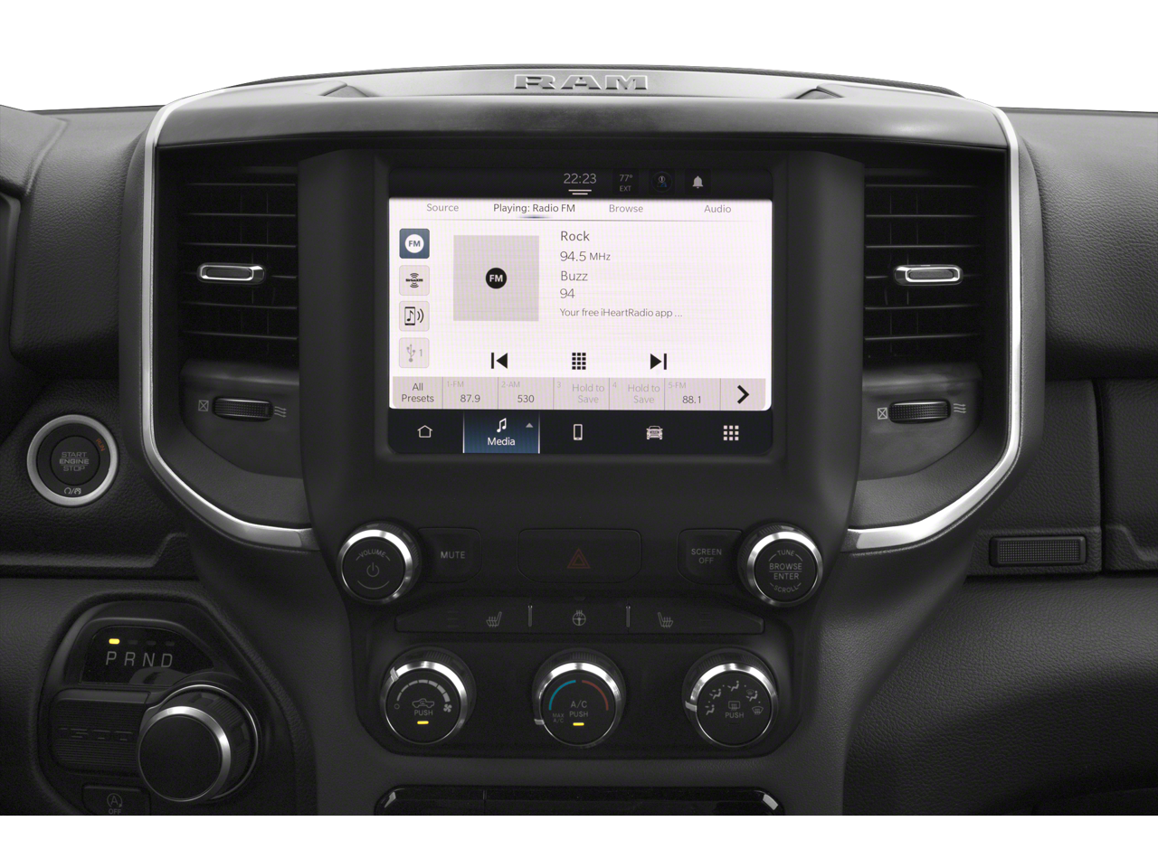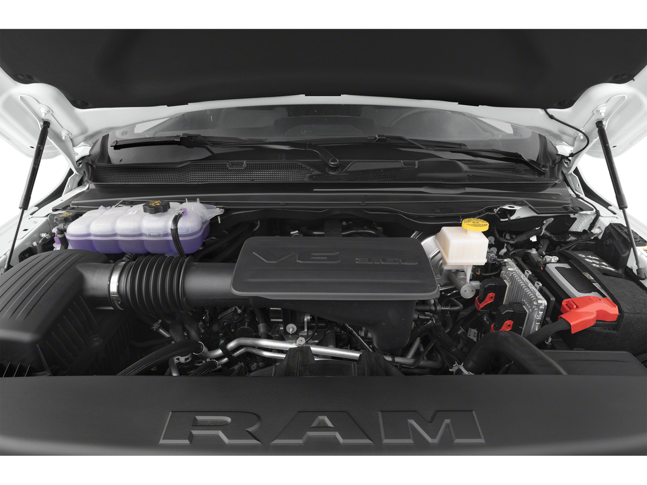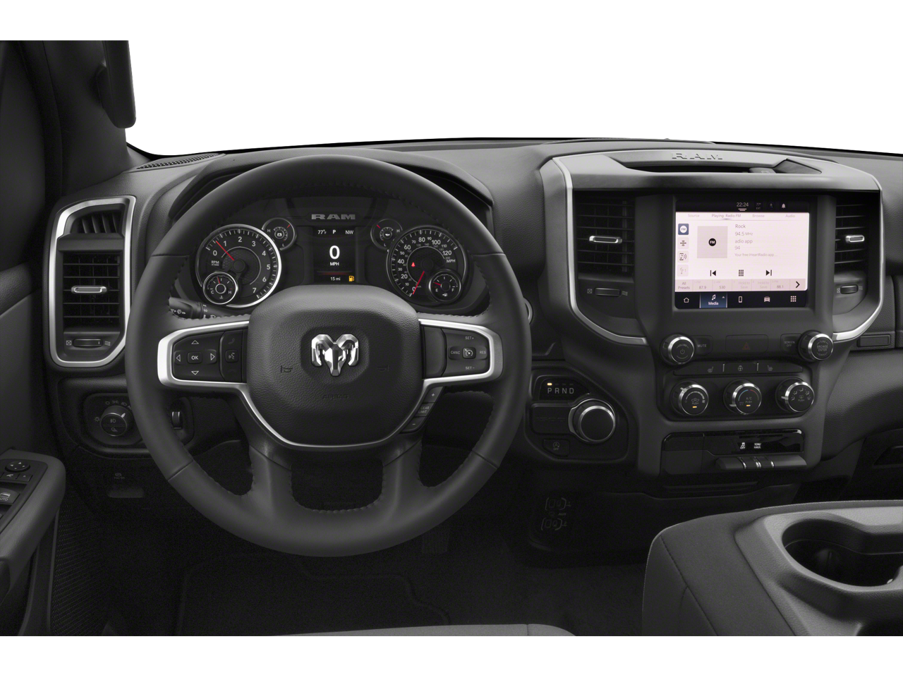 Ram Certified, 115V Auxiliary Power Outlet, 12 Touchscreen Display, 3 Rear Seat Head Restraints, 3.21 Rear Axle Ratio, 4 Way Front Headrests, 4-Wheel Disc Brakes, 400W Inverter, 48V Belt Starter Generator, 4G LTE Wi-Fi Hot Spot, 6 Speakers, 9 Amplified Speakers w/Subwoofer, ABS brakes, Accent Color Door Handles, Accent Color Premium Power Mirrors, Air Conditioning, Air Conditioning ATC w/Dual Zone Control, All R1 High Radios, All Radio Equipped Vehicles, Alloy wheels, AM/FM radio, Anti-Spin Differential Rear Axle, Apple CarPlay, Auto-Dimming Exterior Driver Mirror, Auto-Dimming Rear-View Mirror, Big Horn Badge, Big Horn Level B Equipment Group, Black Exterior Mirrors, Black Exterior Truck Badging, Black Headlamp Bezels, Black Interior Accents, Black Painted Exterior Mirrors Caps, Black Premium Power Mirrors, Body Color Front Bumper, Body Color Rear Bumper w/Step Pads, Brake assist, Bucket Seats, Bumpers: chrome, Center Console Parts Module, Class IV Receiver Hitch, Cloth Bench Seat, Cluster 7.0 TFT Color Display, Compass, Connected Travel & Traffic Services, Connectivity - US/Canada, Convex Wide-Angle Mirror Insert, Delay-off headlights, Deluxe Cloth Bucket Seats, Disassociated Touchscreen Display, Driver door bin, Dual Exhaust w/Black Tips, Dual front impact airbags, Dual front side impact airbags, Electric Shift-On-Demand Transfer Case, Electronic Stability Control, Emergency communication system: SiriusXM Guardian, Exterior Mirrors Courtesy Lamps, Exterior Mirrors w/Heating Element, Exterior Mirrors w/Supplemental Signals, For Details, Visit DriveUconnect.com, For More Info, Call 800-643-2112, Front anti-roll bar, Front Center Armrest w/Storage, Front Fog Lamps, Front License Plate Bracket, Front reading lights, Front Seat Back Map Pockets, Front wheel independent suspension, Full Length Floor Console, Fully automatic headlights, Glove Box Lamp, Google Android Auto, GPS Antenna Input, GPS Navigation, Grille Surround 1 Black Texture 2 Black, HD Radio, Heated door mirrors, Heated Front Seats, Heated Steering Wheel, Illuminated entry, Integrated Center Stack Radio, Integrated Voice Command w/Bluetooth®, Leather steering wheel, LED Footwell Lighting, Low tire pressure warning, Manual Adjust 4-Way Front P