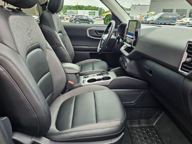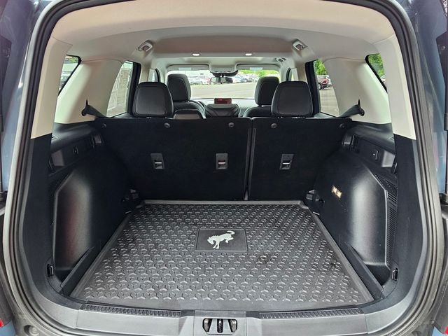 Ford Gold Certified Certified, 3.80 Axle Ratio, 4-Wheel Disc Brakes, 6 Speakers, ABS brakes, Air Conditioning, Alloy wheels, AM/FM radio: SiriusXM, AM/FM Stereo, Auto High-beam Headlights, Automatic temperature control, Black Appearance Package, Brake assist, Carbon Black Two-Tone Grille w/Bronco, Cargo Mat, Compass, Convenience Package, Delay-off headlights, Driver door bin, Driver vanity mirror, Dual front impact airbags, Dual front side impact airbags, Electronic Stability Control, Emergency communication system: SYNC 3 911 Assist, Equipment Group 200A, Evasive Steering Assist, Ford Co-Pilot360 Assist+, Four wheel independent suspension, Front & Rear Floor Liners w/o Carpet Mats, Front anti-roll bar, Front Bucket Seats, Front Center Armrest, Front Driver/Passenger Seat Back Map Pockets, Front reading lights, Fully automatic headlights, Heated door mirrors, Heated Front Bucket Seats, Illuminated entry, Intelligent Adaptive Cruise Control w/Stop & Go, Knee airbag, LED Fog Lamps, Low tire pressure warning, Occupant sensing airbag, Outside temperature display, Overhead airbag, Overhead console, Painted Shadow Black Roof, Panic alarm, Passenger door bin, Passenger vanity mirror, Power door mirrors, Power Moonroof, Power steering, Power windows, Premium Trimmed Front Sport Contour Bucket Seats, Premium Wrapped Steering Wheel, Radio data system, Rear anti-roll bar, Rear Parking Sensors, Rear reading lights, Rear seat center armrest, Rear window defroster, Rear window wiper, Remote keyless entry, Security system, SiriusXM, Speed control, Speed-sensing steering, Speed-Sensitive Wipers, Split folding rear seat, Steering wheel mounted audio controls, SYNC 3 Communications & Entertainment System, Tachometer, Telescoping steering wheel, Tilt steering wheel, Traction control, Trip computer, Unique Cloth Front Bucket Seats, Universal Garage Door Opener (UGDO), Variably intermittent wipers, Voice-Activated Touchscreen Navigation System, Wheels: 17 Carbonized Gray-Painted Aluminum, Wheels: 17 Matte Black-Painted, Wireless Charging Pad. Azure Gray Metallic 2024 Ford Bronco Sport Big Bend 4WD 8-Speed Automatic 1.5L EcoBoost