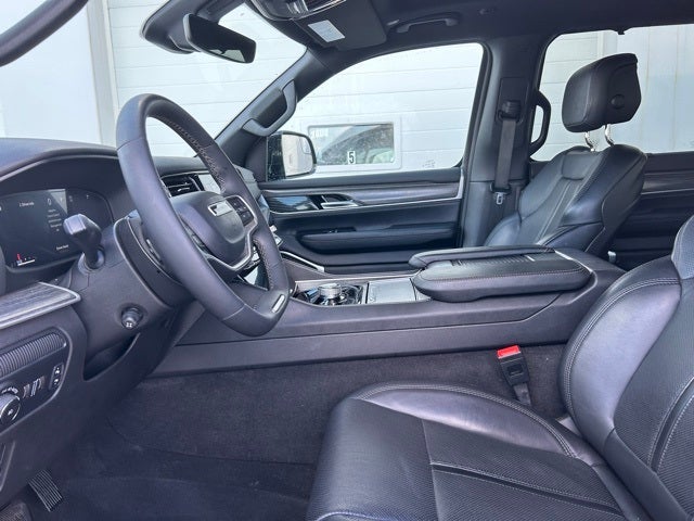 CPO Gold Certified, 2nd Row Manual Window Shades, 3 Panel Sunroof, Adjustable Roof Rail Crossbars, Auto High Beam Headlamp Control, Cargo Cover, Convenience Group I, Drowsy Driver Detection, Heads-Up Display, Intersection Collision Assist System, P&P Park & Unpark Assist w/Stop System, Premium Group I, Quick Order Package 25J, Reversible Carpet/Vinyl Cargo Mat, Side Distance Warning, Surround View Camera System, Traffic Sign Recognition, 10 Speakers, 118 MPH Maximum Speed Calibration, 3.55 Rear Axle Ratio, 3rd row seats: bench, 4-Wheel Disc Brakes, ABS brakes, Adjustable pedals, Air Conditioning, Alloy wheels, AM/FM radio: SiriusXM with 360L, Anti-whiplash front head restraints, Apple CarPlay/Android Auto, Audio memory, Auto-dimming door mirrors, Auto-dimming Rear-View mirror, Auto-leveling suspension, Automatic temperature control, Brake assist, Bumpers: body-color, Compass, Delay-off headlights, Driver door bin, Driver vanity mirror, Driver's Seat Mounted Armrest, Dual front impact airbags, Dual front side impact airbags, Electronic Stability Control, Emergency communication system: Wagoneer Connect, Exterior Parking Camera Rear, Four wheel independent suspension, Front anti-roll bar, Front Bucket Seats, Front Center Armrest w/Storage, Front dual zone A/C, Front fog lights, Front reading lights, Fully automatic headlights, Garage door transmitter, Genuine wood console insert, Genuine wood dashboard insert, Genuine wood door panel insert, Heated door mirrors, Heated front seats, Heated rear seats, Heated steering wheel, Illuminated entry, Knee airbag, Leather Trimmed Bucket Seats, Low tire pressure warning, Memory seat, Navigation System, Normal Duty Suspension, Occupant sensing airbag, Outside temperature display, Overhead airbag, Overhead console, Panic alarm, Passenger door bin, Passenger seat mounted armrest, Passenger vanity mirror, Pedal memory, Power adjustable front head restraints, Power door mirrors, Power driver seat, Power Liftgate, Power passenger seat, Power steering, Power windows, Radio data system, Radio: Uconnect 5 Nav w/10.1 Display, Rain sensing wipers, Rear air conditioning, Rear anti-roll bar, Rear dual zone A/C, Rear reading lights, Rear seat center armrest, Rear window defroster, Rear window wiper, Reclining 3rd row seat, Remote keyless entry, Security system, Speed control, Speed-sensing steering, Speed-Sensitive Wipers, Split folding rear seat, Steering wheel memory, Steering wheel mounted audio controls, Tachometer, Telescoping steering wheel, Tilt steering wheel, Traction control, Trip computer, Turn signal indicator mirrors, Variably intermittent wipers, Ventilated front seats, Voltmeter, Wheels: 20 x 9.0 Premium 2 Aluminum, Wheels: 22 x 9.0 Premium 3 Aluminum, 2nd Row Manual Window Shades, 3 Panel Sunroof, Adjustable Roof Rail Crossbars, Auto High Beam Headlamp Control, Cargo Cover, Convenience Group I, Drowsy Driver Detection, Heads-Up Display, Intersection Collision Assist System, P&P Park & Unpark Assist w/Stop System, Premium Group I, Quick Order Package 25J, Reversible Carpet/Vinyl Cargo Mat, Side Distance Warning, Surround View Camera System, Traffic Sign Recognition. Baltic Gray Metallic Clearcoat 2024 Jeep Wagoneer Series II 4WD 8-Speed Automatic 3.0L I6