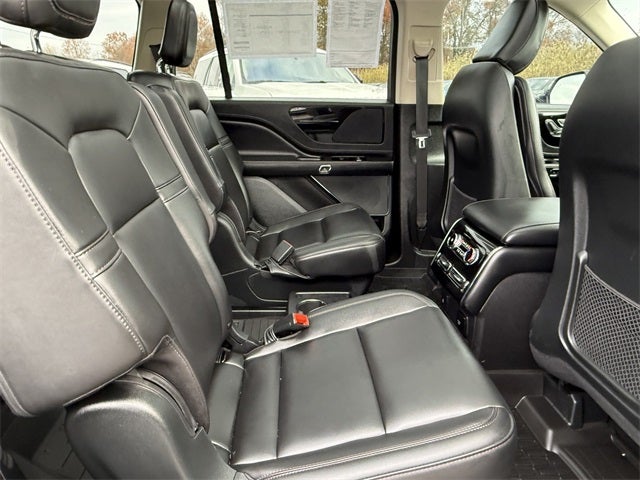 Lincoln Certified Pre-Owned Certified, 10 Speakers, 2nd Row 40/Mini Console/40 Dual Captain's Chairs, 3rd row seats: split-bench, 4-Pin & 7-Pin Connectors, 4-Wheel Disc Brakes, ABS brakes, Air Conditioning, All-Weather 1st & 2nd Row Floor Liners (16A), Alloy wheels, AM/FM radio: SiriusXM, Audio memory, Auto High-beam Headlights, Auto-dimming door mirrors, Auto-dimming Rear-View mirror, Automatic temperature control, Blind Spot Information System, Brake assist, Bumpers: body-color, Class IV Hitch & Wiring, Class IV Trailer Tow Package, Compass, Delay-off headlights, Driver door bin, Driver vanity mirror, Dual front impact airbags, Dual front side impact airbags, Electronic Stability Control, Elements Package, Emergency communication system, Equipment Group 100A, First Aid Kit, Four wheel independent suspension, Front anti-roll bar, Front Bucket Seats, Front Center Armrest, Front dual zone A/C, Front reading lights, Fully automatic headlights, Garage door transmitter, Heated 2nd Row Outboard Seats, Heated door mirrors, Heated front seats, Heated Steering Wheel, Heated VisioBlade Wipers, HVAC memory, Illuminated entry, Knee airbag, Lane Departure Warning System, Lincoln Soft Touch Heated Front Captain's Chairs, Low tire pressure warning, Memory seat, Occupant sensing airbag, Outside temperature display, Overhead airbag, Overhead console, Panic alarm, Panoramic Vista Roof w/Power Shade, Passenger door bin, Passenger vanity mirror, Power door mirrors, Power driver seat, Power Liftgate, Power passenger seat, Power steering, Power windows, Premium Package, Radio data system, Radio: Lincoln Premium Audio System, Rain sensing wipers, Rear air conditioning, Rear anti-roll bar, Rear reading lights, Rear window defroster, Rear window wiper, Remote keyless entry, Security system, SiriusXM Radio, Smart Trailer Tow, Speed control, Speed-Sensitive Wipers, Split folding rear seat, Spoiler, Steering wheel mounted A/C controls, Steering wheel mounted audio controls, SYNC 3 Communication & Entertainment System, Tachometer, Telescoping steering wheel, Tilt steering wheel, Traction control, Trailer Sway Control, Trip computer, Turn signal indicator mirrors, Variably intermittent wipers, Voice-Activated Touchscreen Navigation System, Wheels: 19 Bright-Machined Aluminum, Wheels: 20 Bright-Machined Aluminum. Pristine White Metallic Tri-Coat 2024 Lincoln Aviator Premiere AWD 10-Speed Automatic 3.0L V6