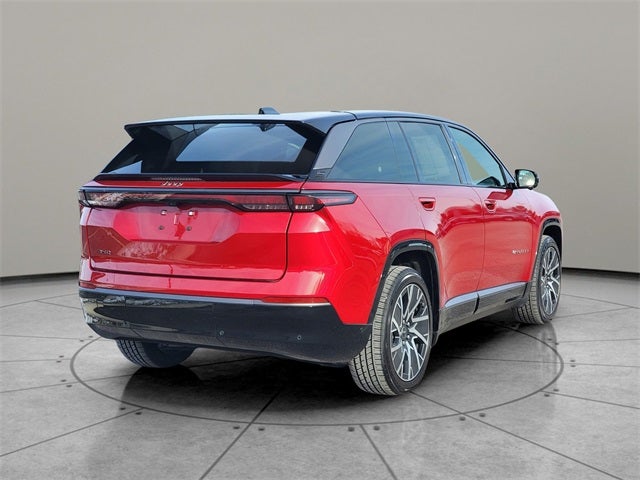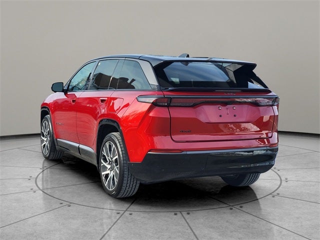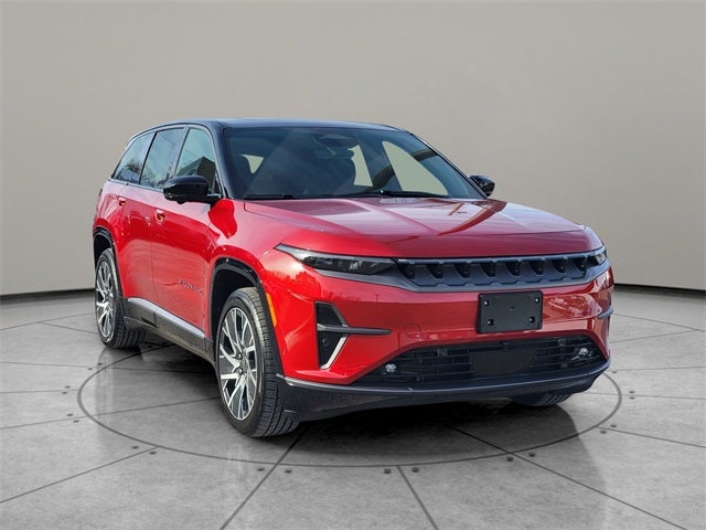 Dark Appearance Package, Dark Daylight Opening Upper, Quick Order Package 25D, Titanium Exterior Accents, Titanium Rear Fascia Applique, Titanium Upper Grille Applique, Two Tone Paint Group, 10 Speakers, 4-Wheel Disc Brakes, ABS brakes, Air Conditioning, Alloy wheels, AM/FM radio: SiriusXM with 360L, Apple CarPlay/Android Auto, Audio memory, Auto High-beam Headlights, Auto-dimming door mirrors, Auto-dimming Rear-View mirror, Automatic temperature control, Brake assist, Bumpers: body-color, Compass, Delay-off headlights, Driver door bin, Driver vanity mirror, Dual front impact airbags, Dual front side impact airbags, Electronic Stability Control, Emergency communication system: Jeep Connect, Four wheel independent suspension, Front anti-roll bar, Front Bucket Seats, Front Center Armrest w/Storage, Front dual zone A/C, Front fog lights, Front reading lights, Fully automatic headlights, Garage door transmitter, Heated door mirrors, Heated front seats, Heated steering wheel, Heavy Duty Suspension, Illuminated entry, Knee airbag, Low tire pressure warning, Memory seat, Navigation System, Neo Ultra Lux II Seats, Occupant sensing airbag, Outside temperature display, Overhead airbag, Panic alarm, ParkView Rear Back-Up Camera, Passenger door bin, Passenger vanity mirror, Power door mirrors, Power driver seat, Power Liftgate, Power moonroof, Power passenger seat, Power steering, Power windows, Premium audio system: UConnect 5, Radio data system, Radio: Uconnect 5 Nav w/12.3 Display, Rain sensing wipers, Rear air conditioning, Rear anti-roll bar, Rear dual zone A/C, Rear reading lights, Rear seat center armrest, Rear side impact airbag, Rear window defroster, Rear window wiper, Remote keyless entry, Security system, Speed control, Speed-sensing steering, Speed-Sensitive Wipers, Split folding rear seat, Spoiler, Steering wheel mounted audio controls, Telescoping steering wheel, Tilt steering wheel, Traction control, Trip computer, Turn signal indicator mirrors, Variably intermittent wipers, Wheels: 20 x 8.5 Painted Diamond Aluminum Design 1, Dark Appearance Package, Dark Daylight Opening Upper, Quick Order Package 25D, Titanium Exterior Accents, Titanium Rear Fascia Applique, Titanium Upper Grille Applique, Two Tone Paint Group. Red Hot Pearlcoat 2025 Jeep Wagoneer S Limited 4WD 1-Speed Automatic Electric Motor
